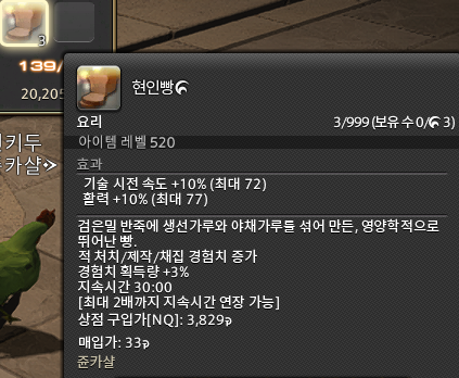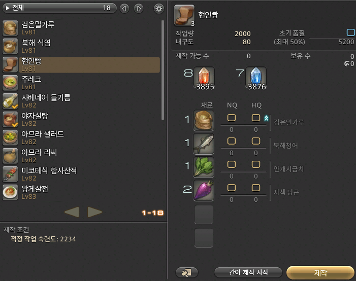 먼저 에오르제아의 현인빵 레시피를 살펴보면 다음과 같습니다.
