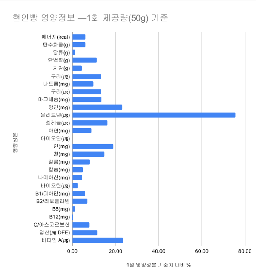 [Fig 24. 현인빵 1회 제공량(50g)의 영양정보]