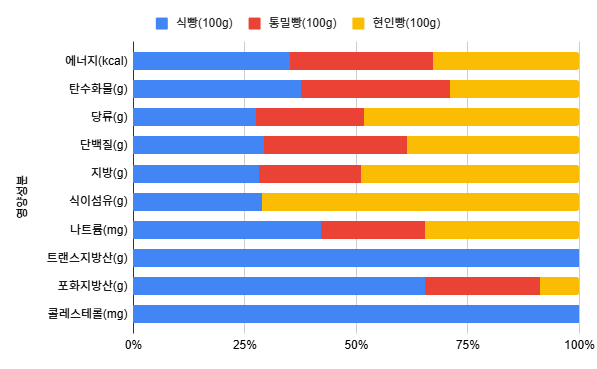 [Fig 25. 식빵, 통밀빵, 현인빵의 영양성분 비교]
