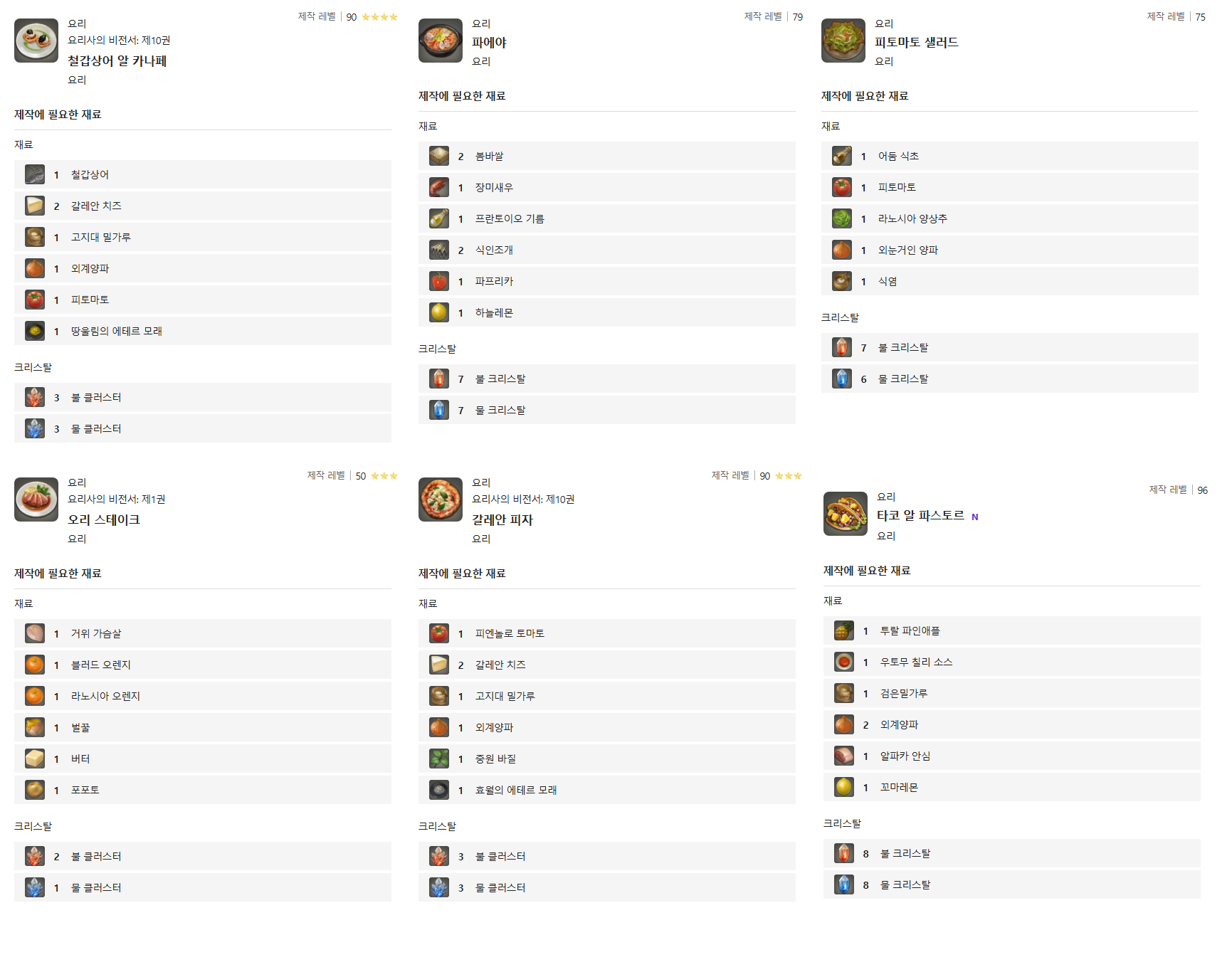 만든 요리는 위의 총 6종으로 기본적인 재료는 다 쓰되 필요에 의해 일부 추가한 재료도 있습니다!