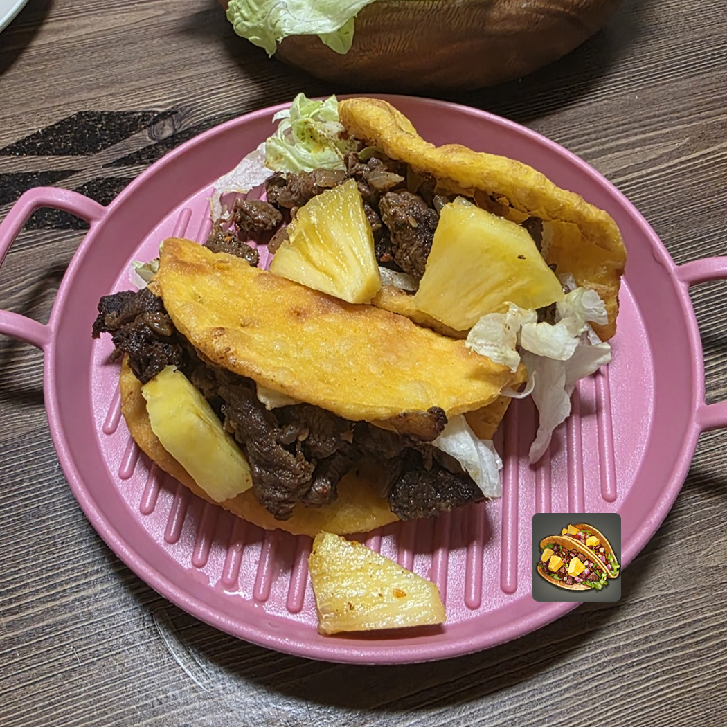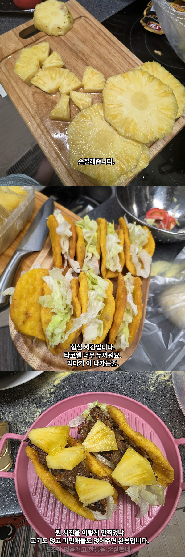 타코도 모두가 아는 그 맛. 저는 양꼬치 시즈닝을 사용해서 쯔란 향도 있었습니다!