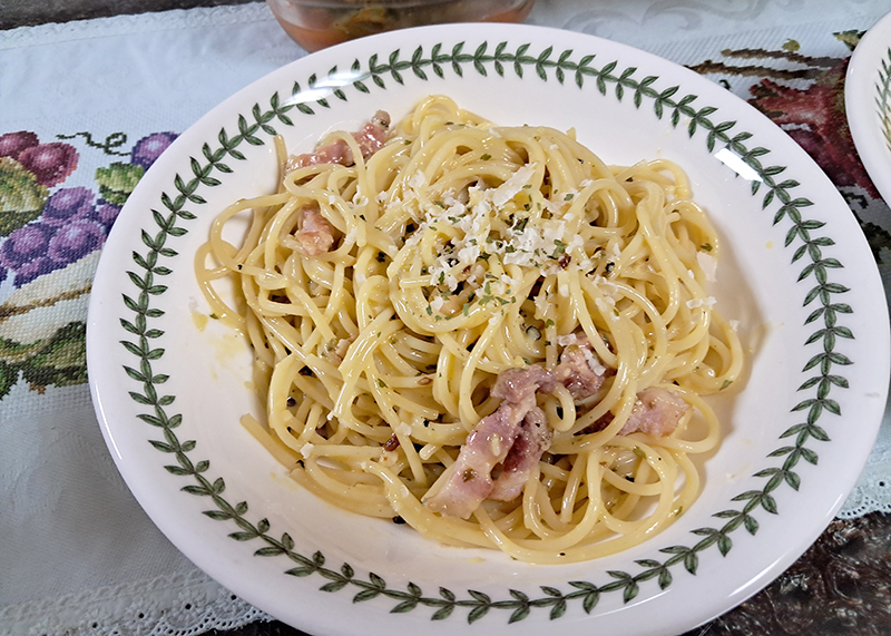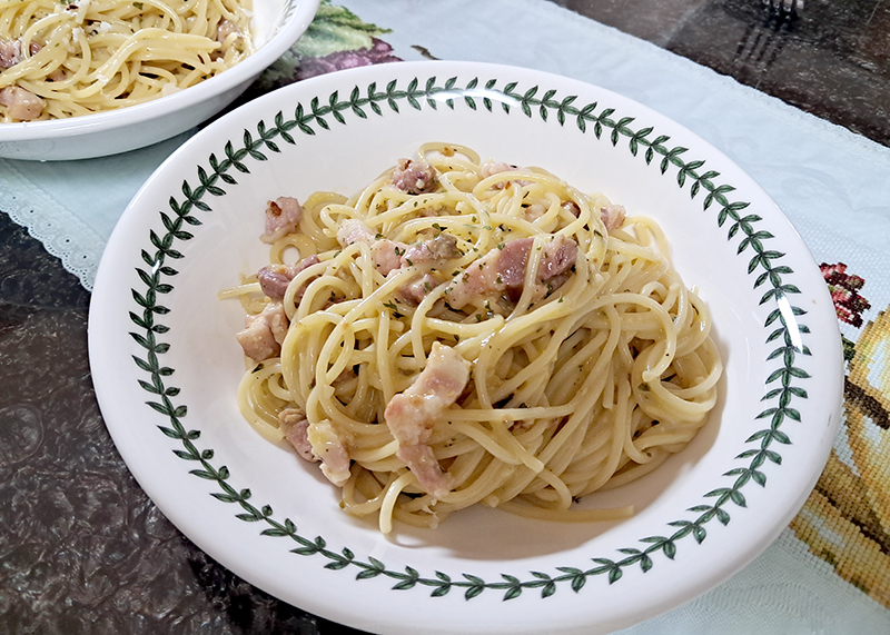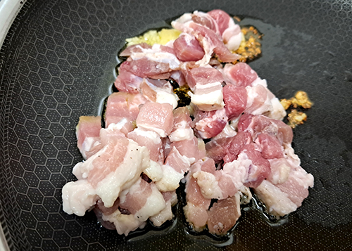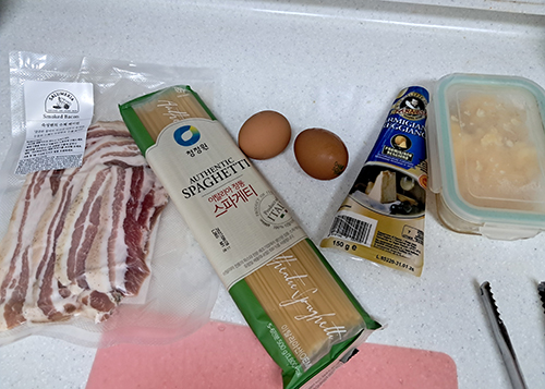 베이컨은 선물받은 관찰레를 다 써버려 아쉬운대로 선물받은 생베이컨을 넣어줬습니다.