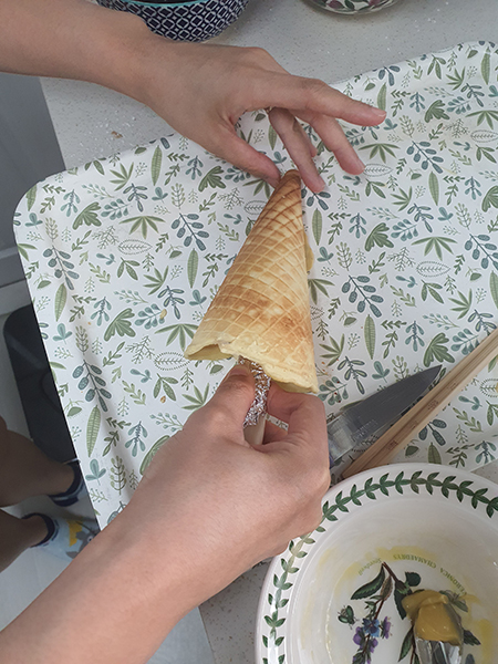 조심히 떼어내서 콘 몰드에 감아 둘러줍니다!