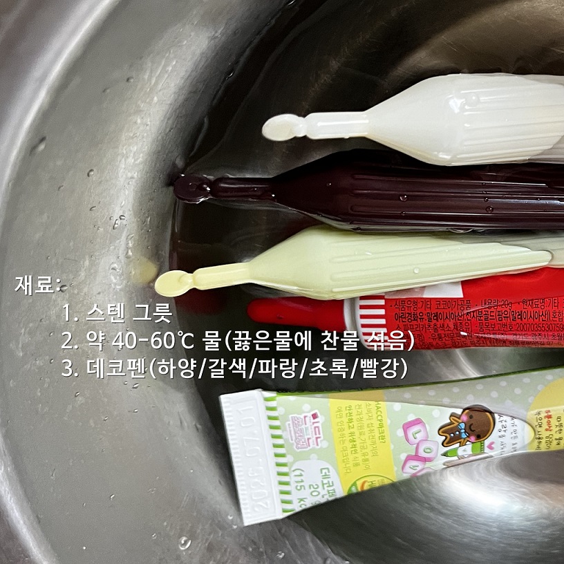 2. 일정한 두께로 만들기 위해 흰색, 갈색 데코펜으로 채우기