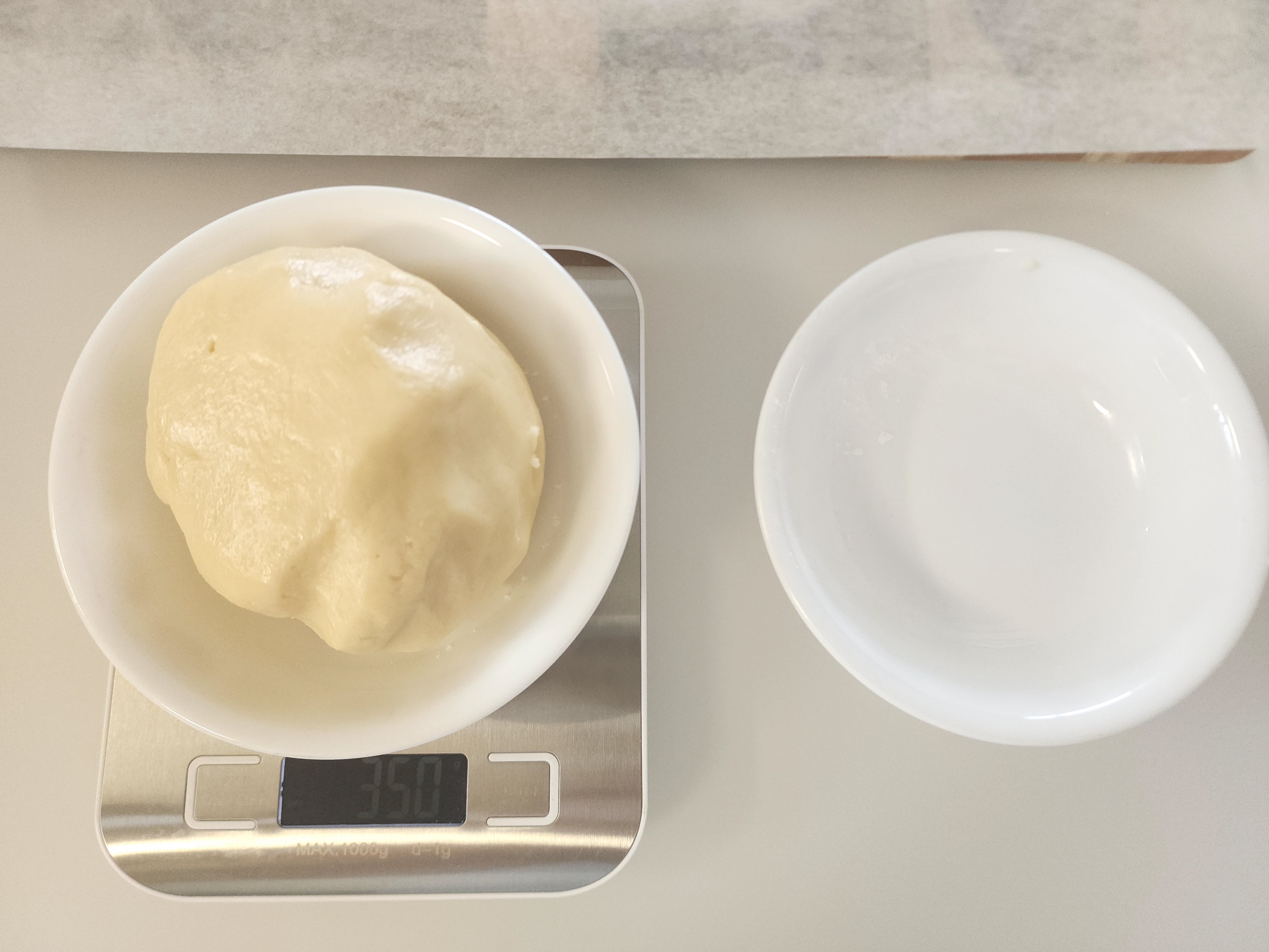 9. 반죽 무게를 재줍니다. 반죽은 총 350g이 나오는군요!
