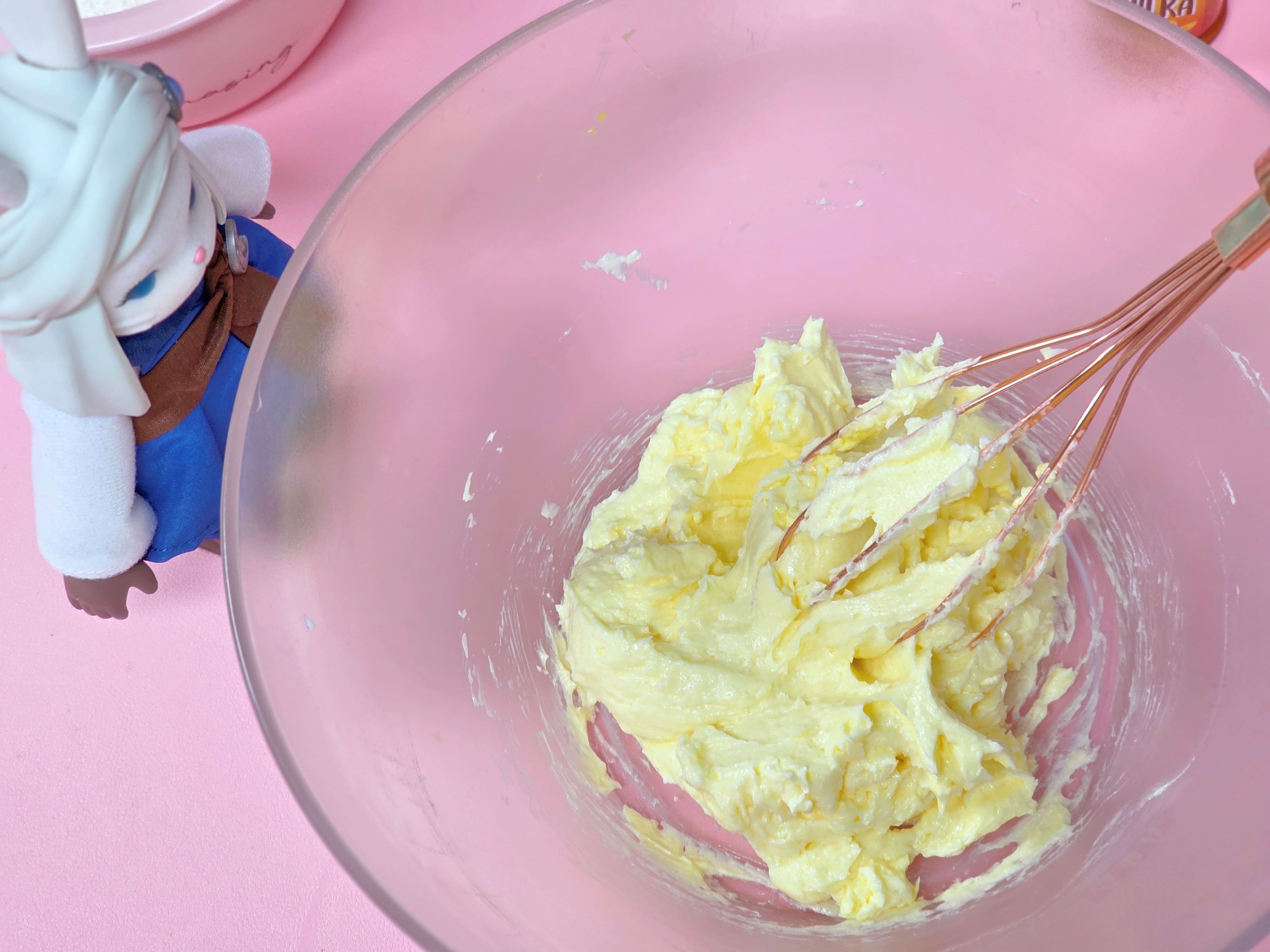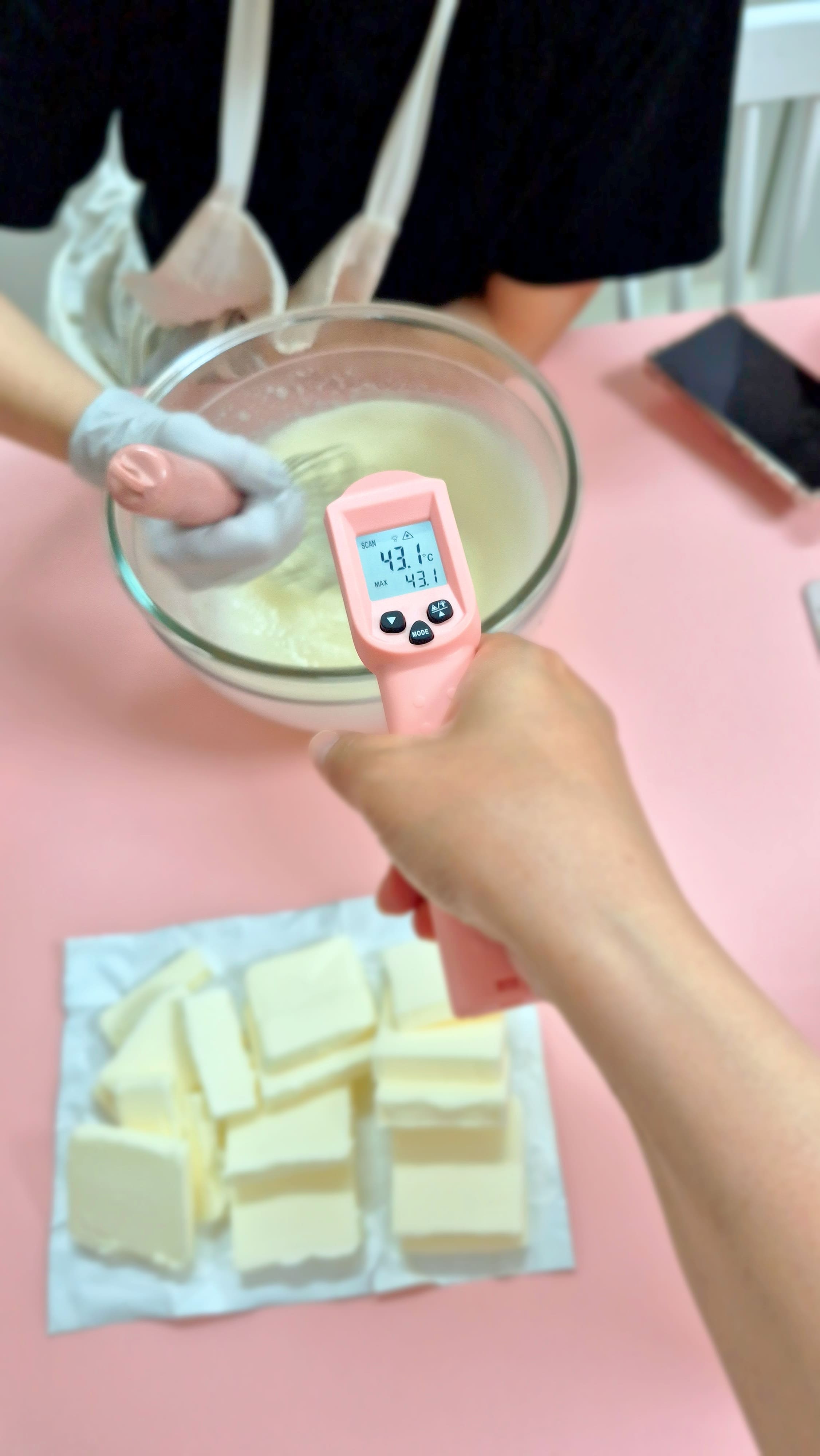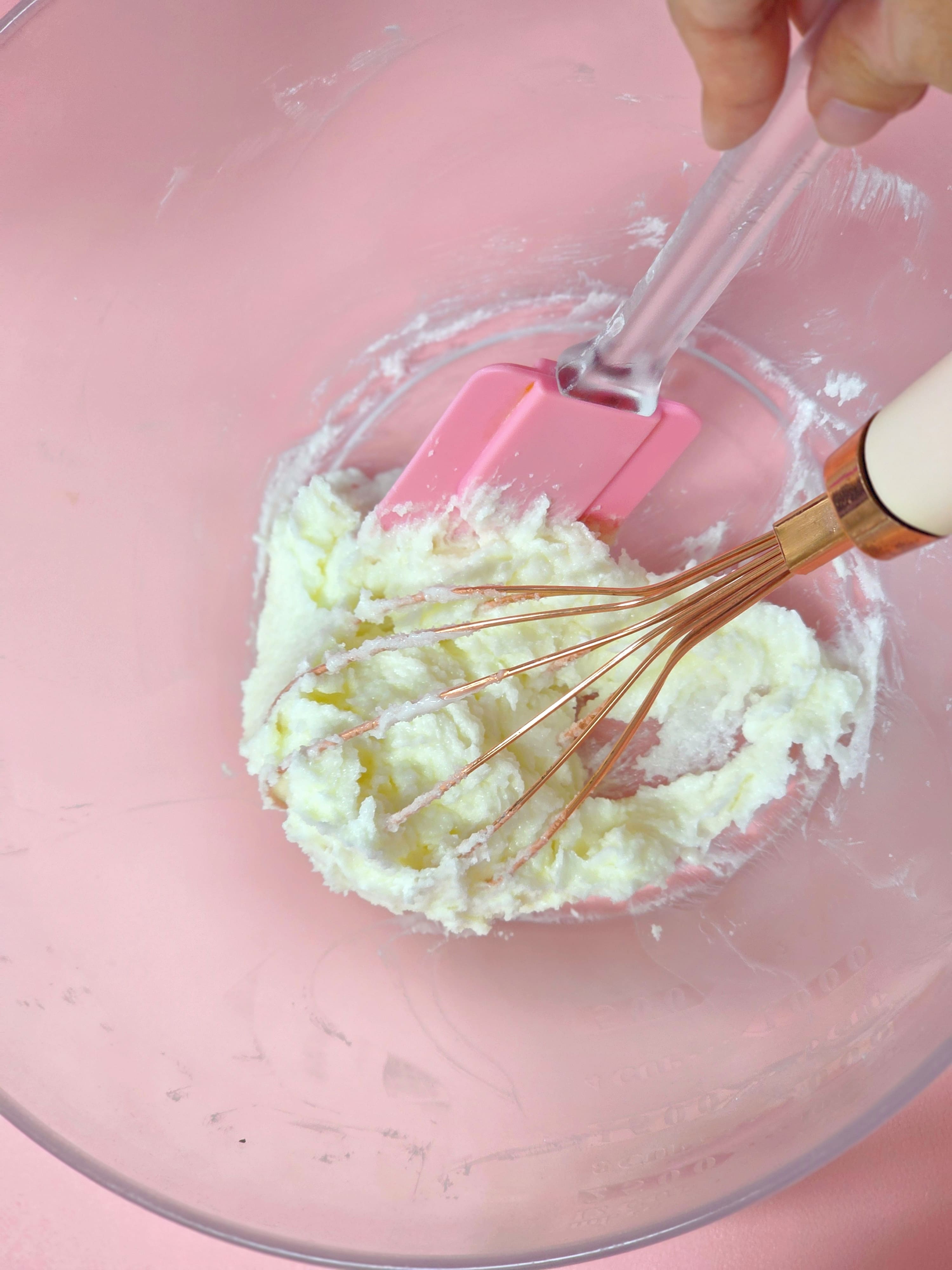 이때 빠르게 휘핑하지 않으면 버터가 분리 돼서 연두부가 됩니다.
