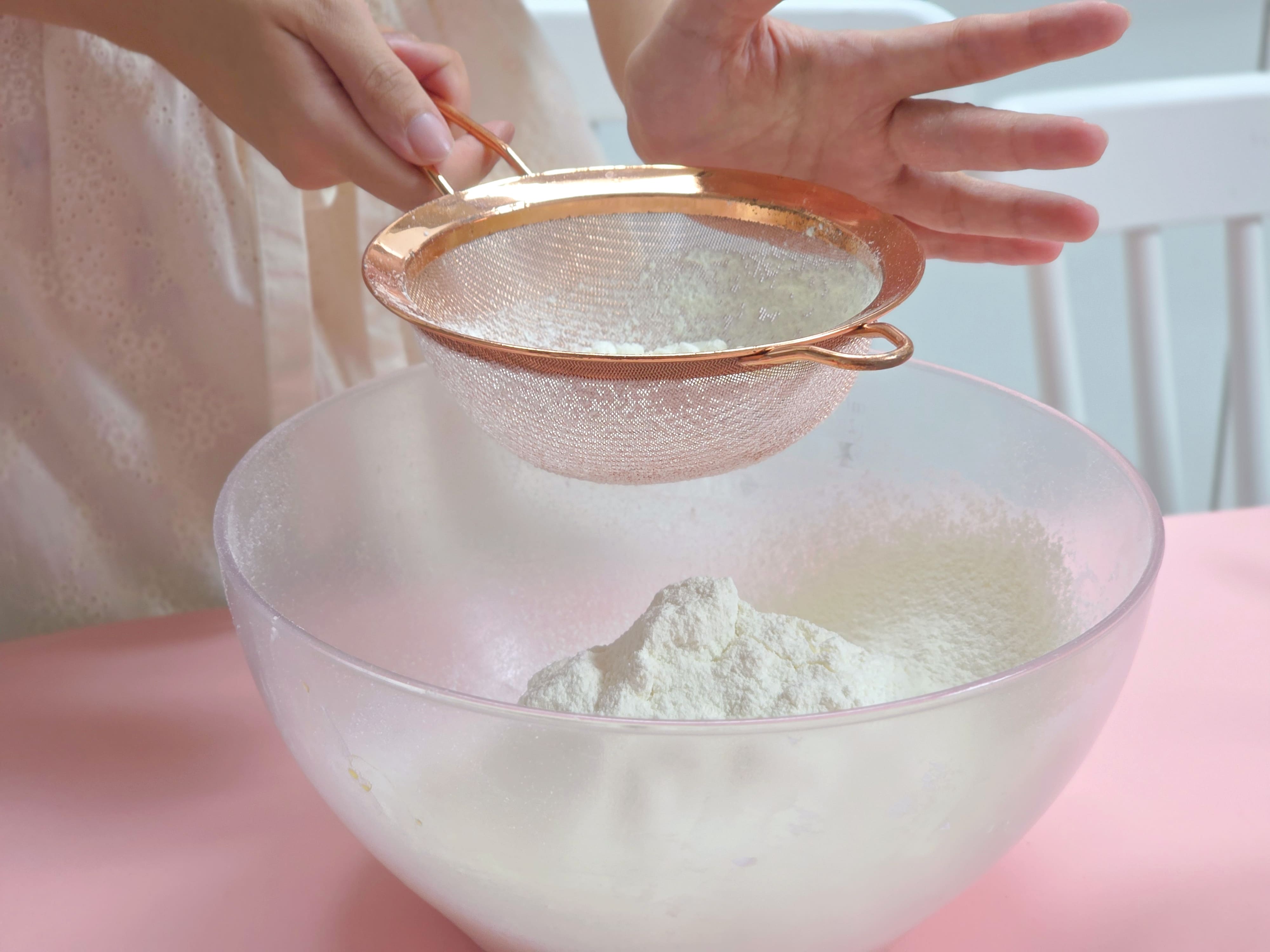 가루류를 한번에 체 쳐서 넣어줍니다.