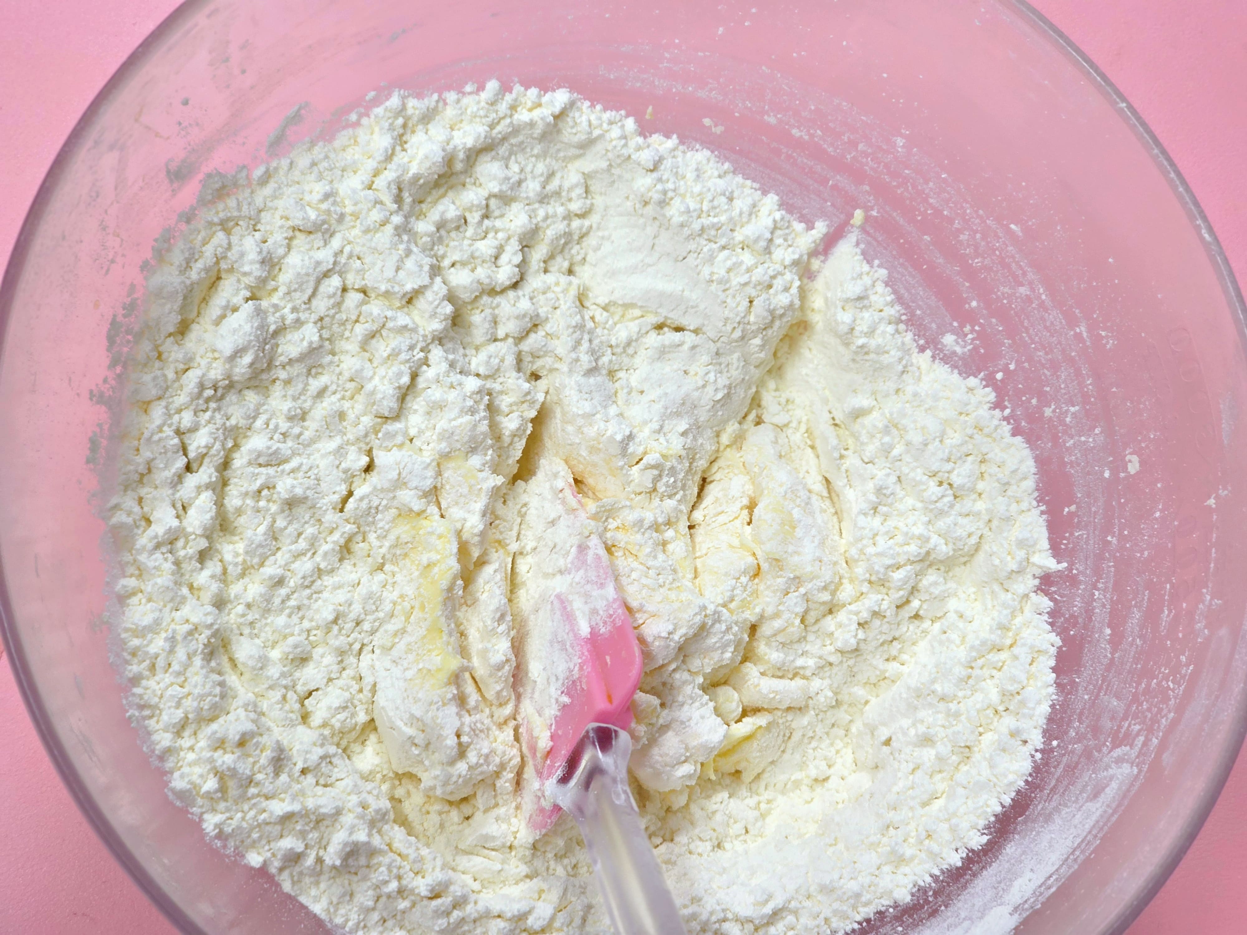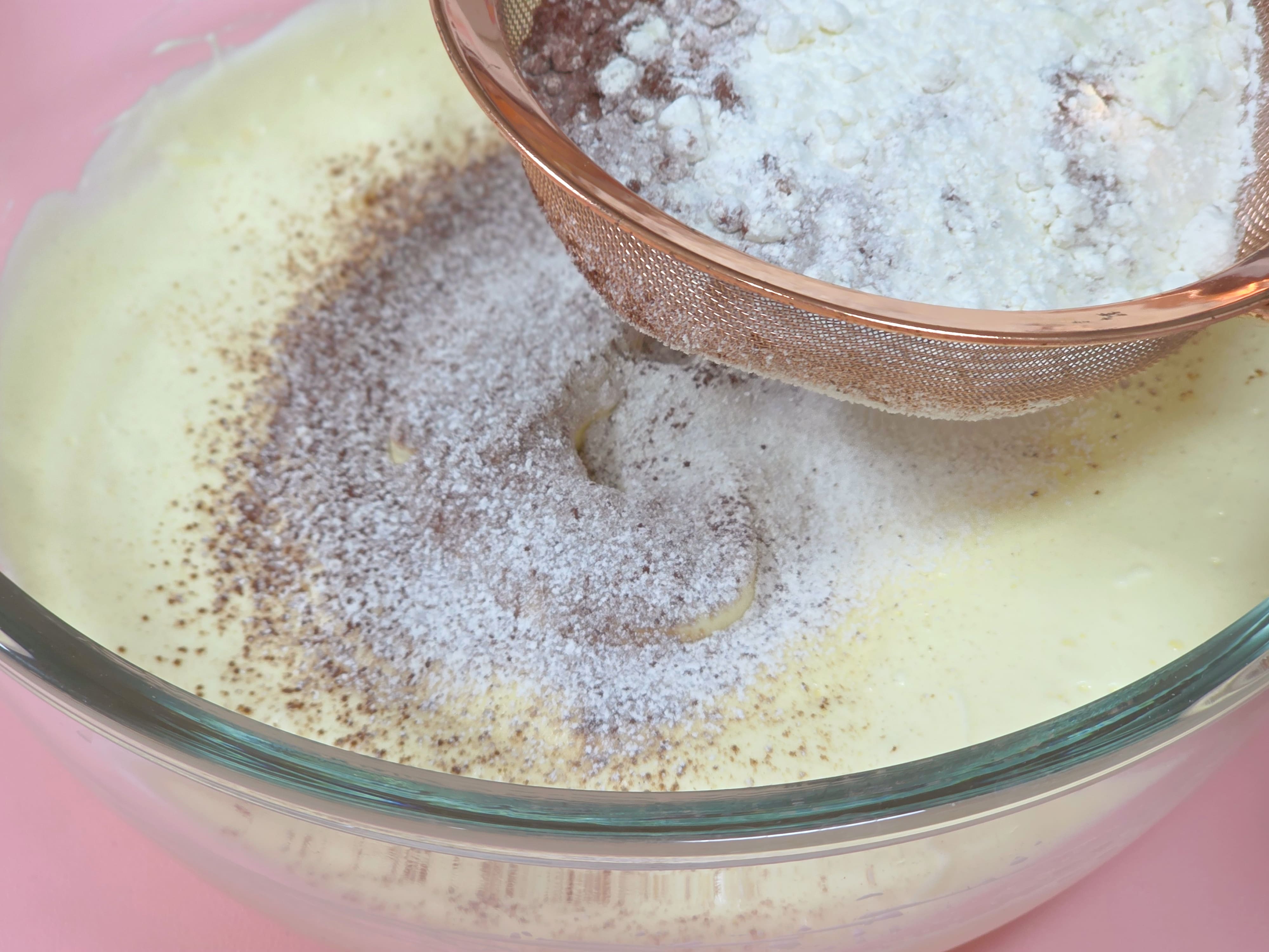 바닐라 향까지 첨가되었으면 박력분을 체쳐서 넣고 가루가 보이지 않을 정도로 섞어줍니다!