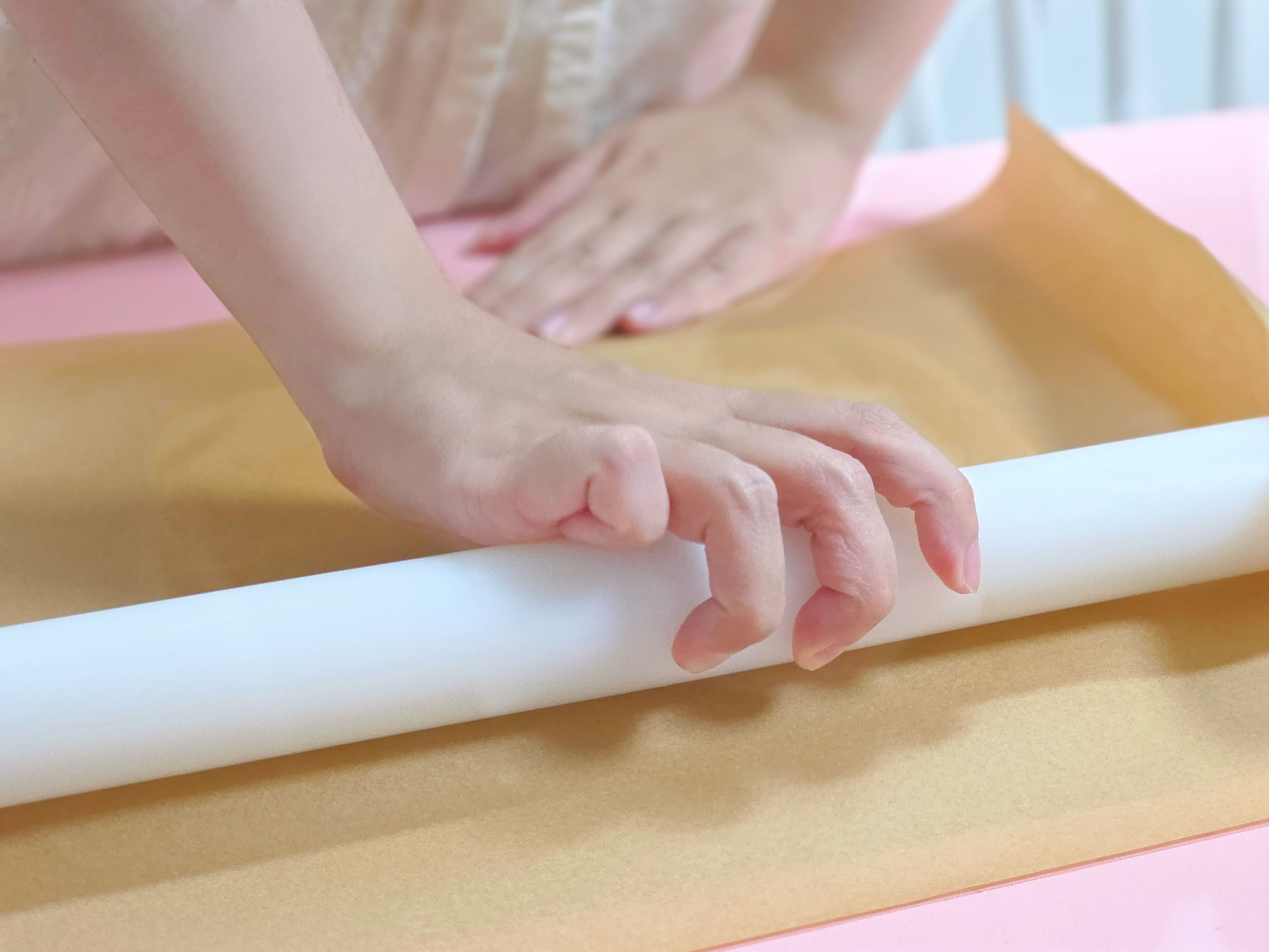 오븐에서 나온 시트는 뒤집어서 식혀준 후 완전히 식으면 건조해지지 않게 랩으로 싼 뒤 대기 시켜줍니다!