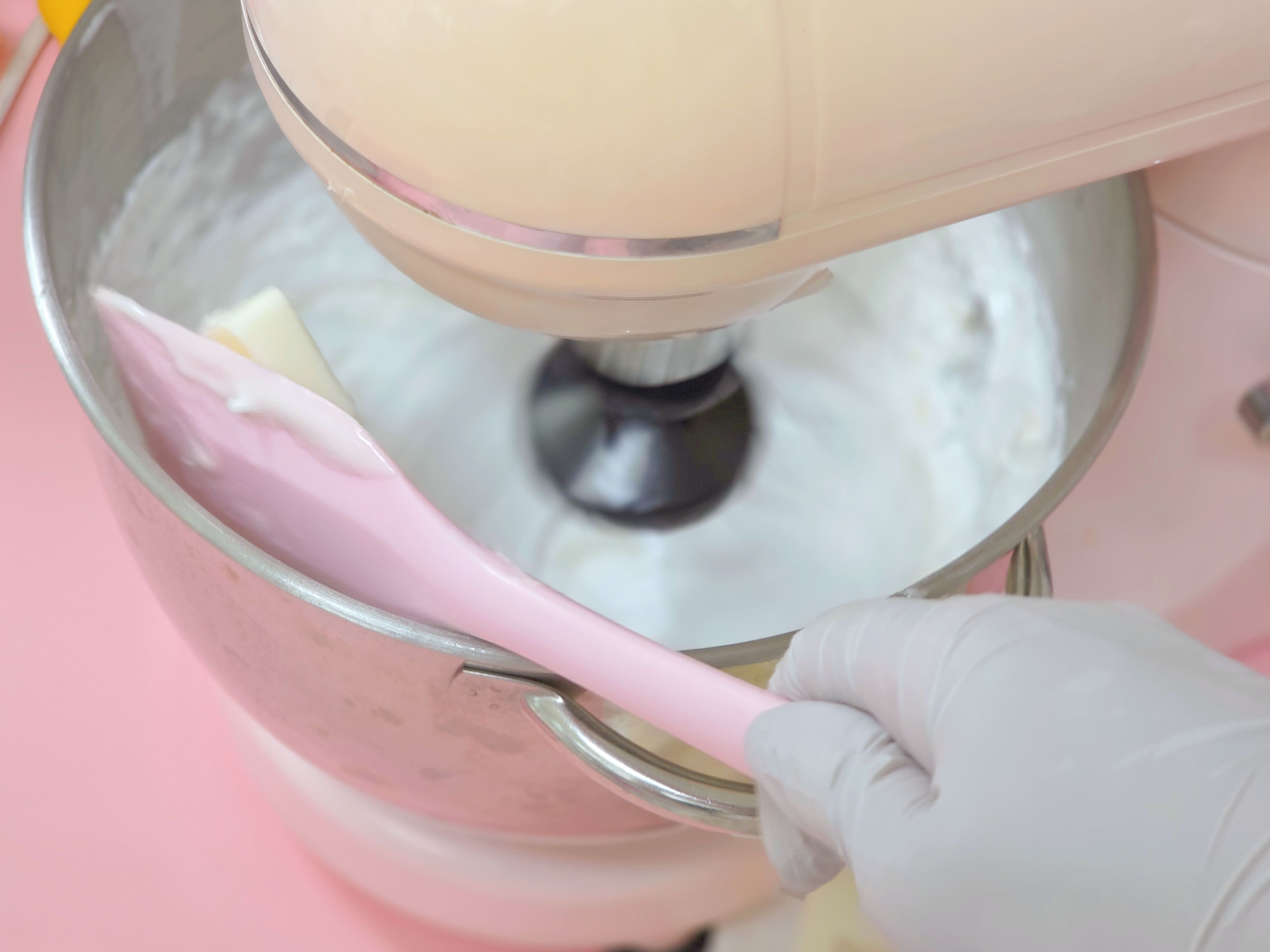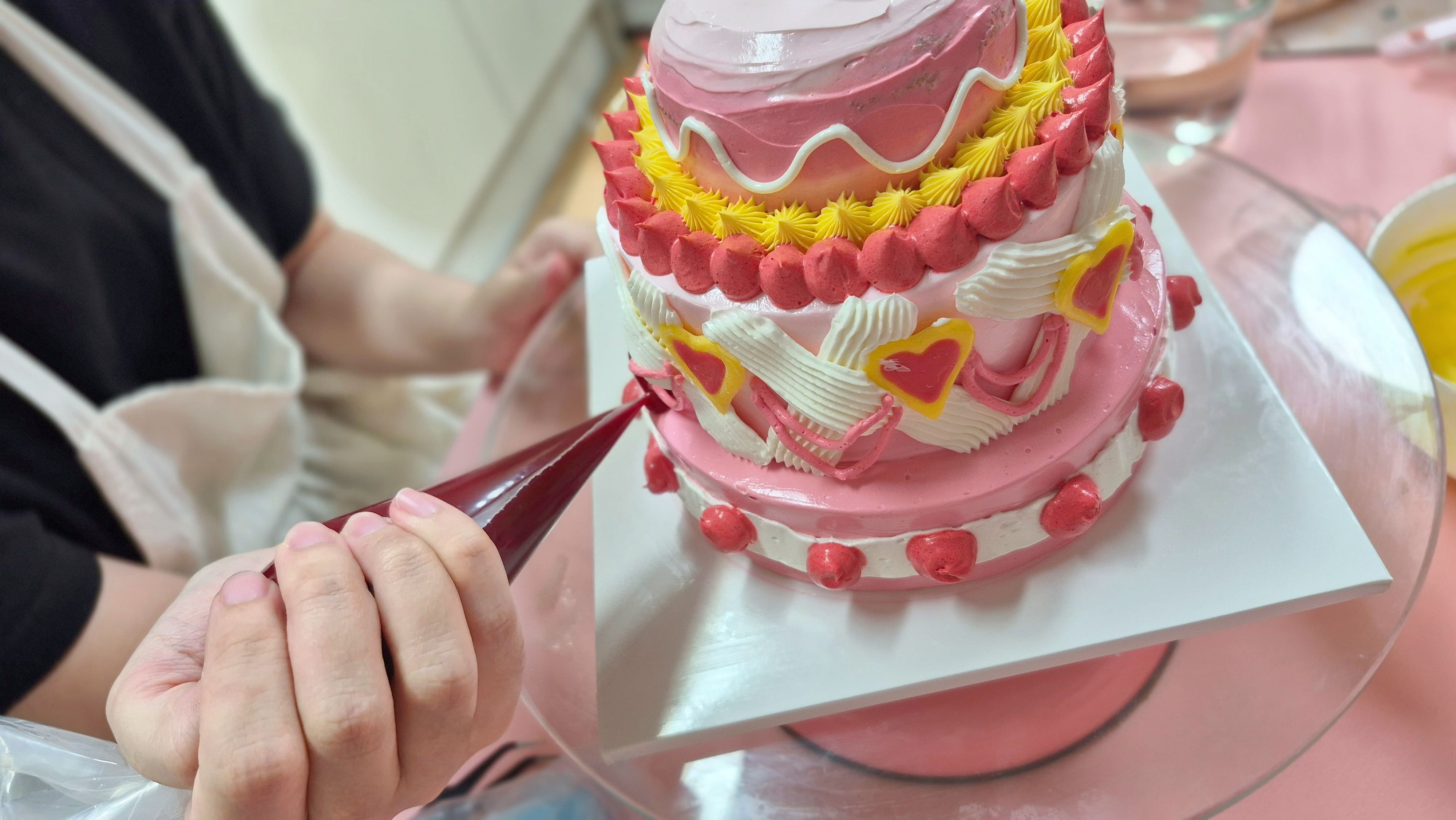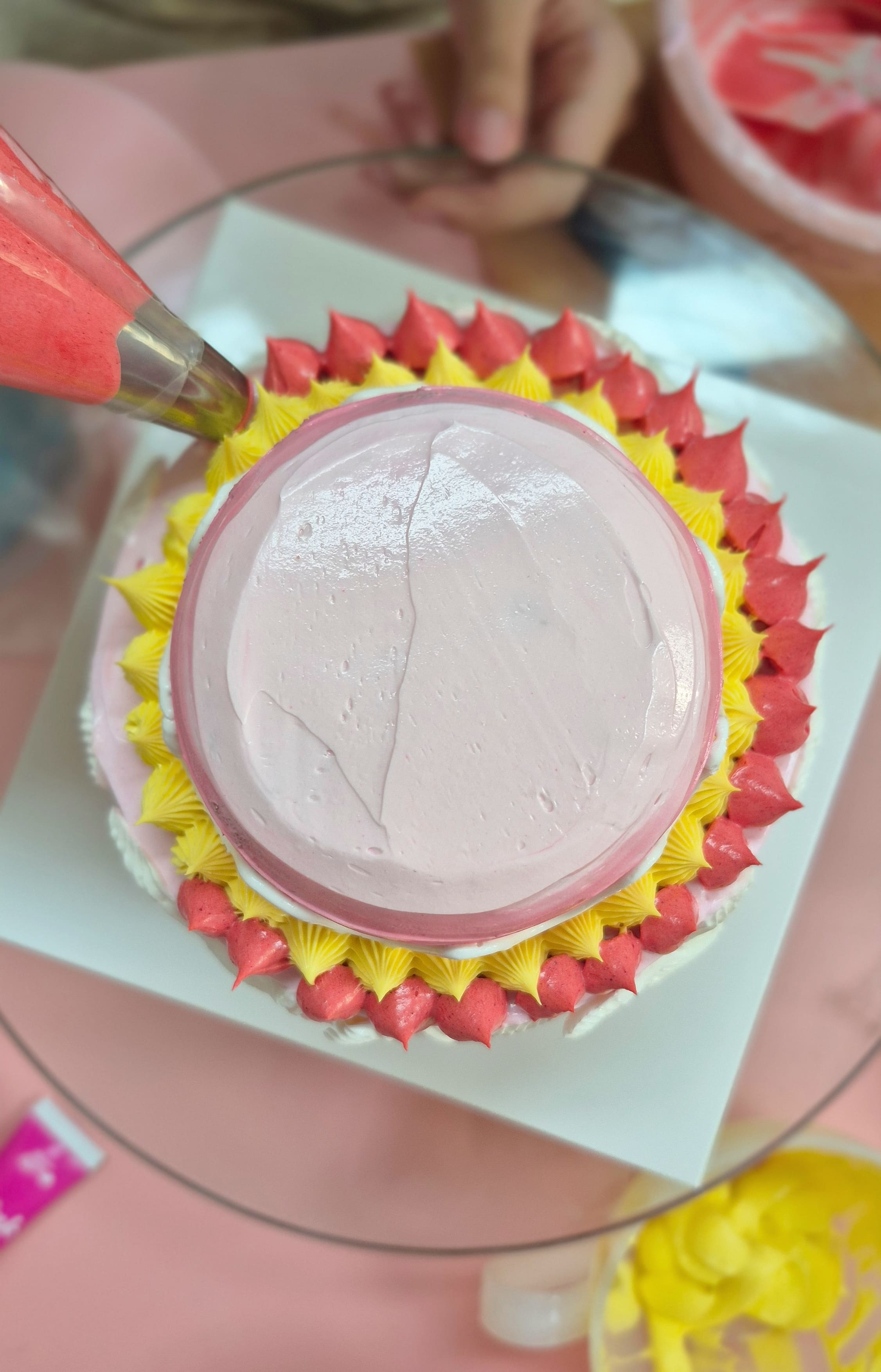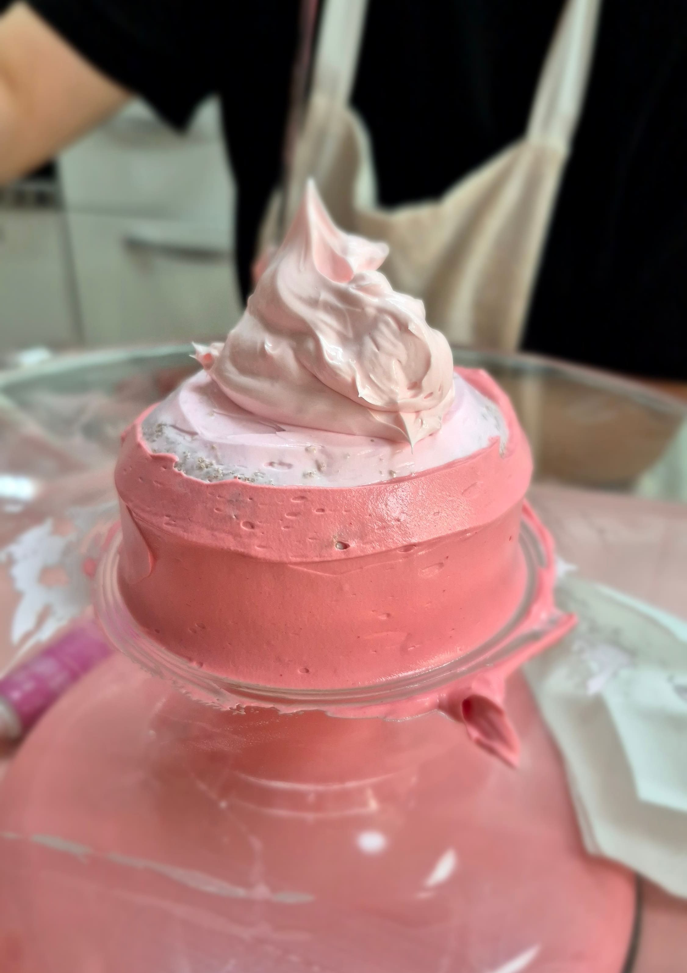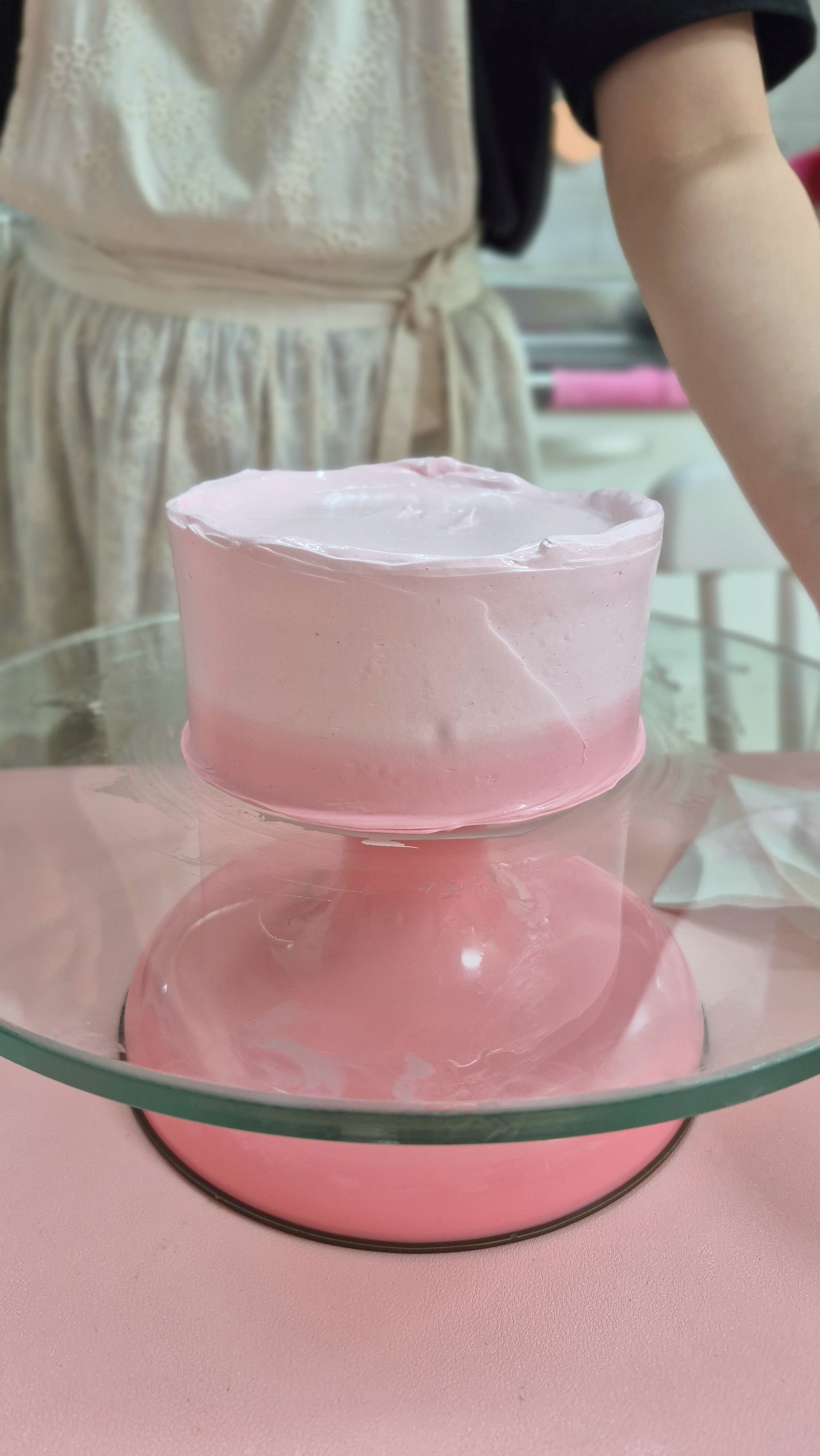 조색 해둔 로즈색 크림으로 본 아이싱을 해줍니다.