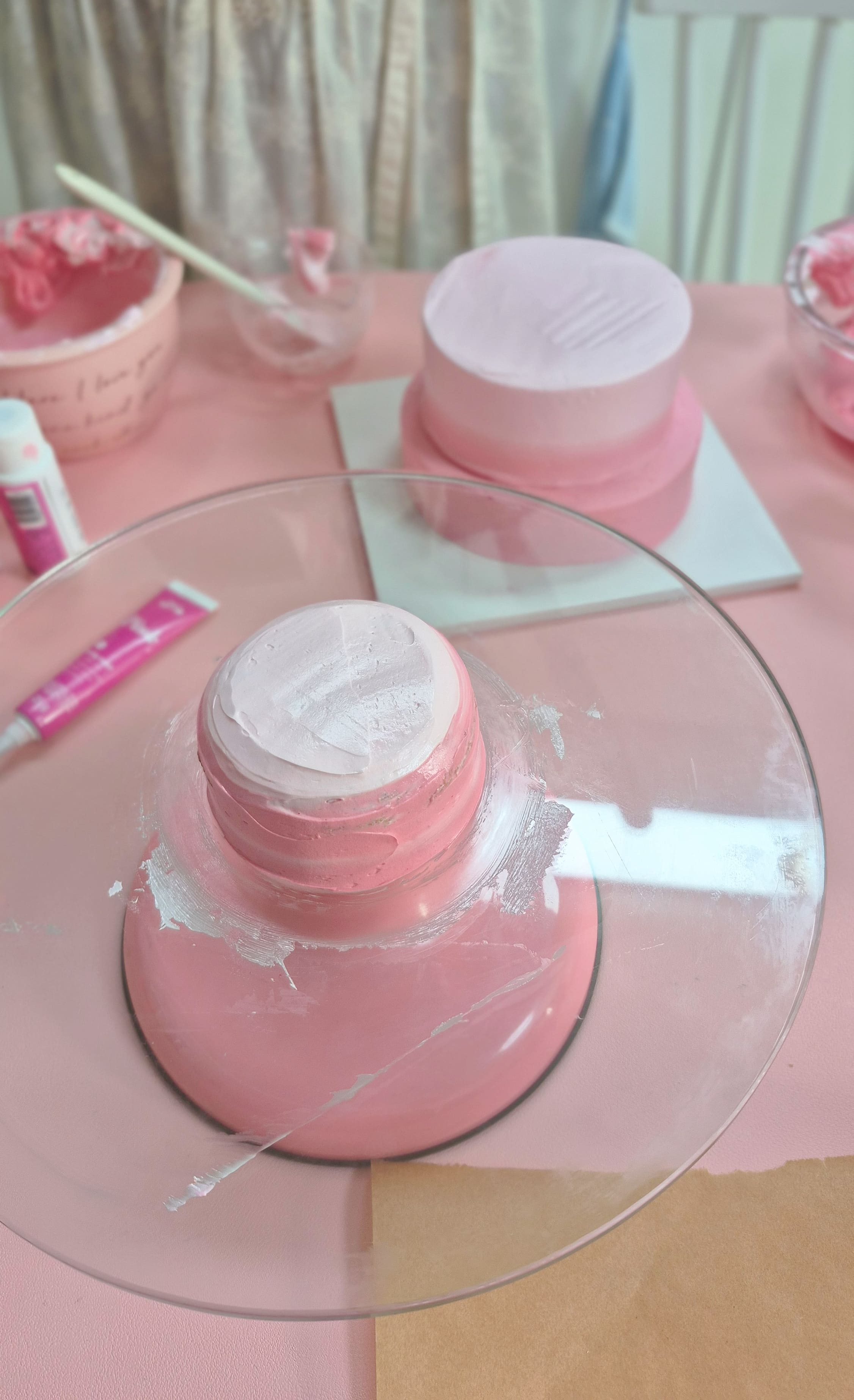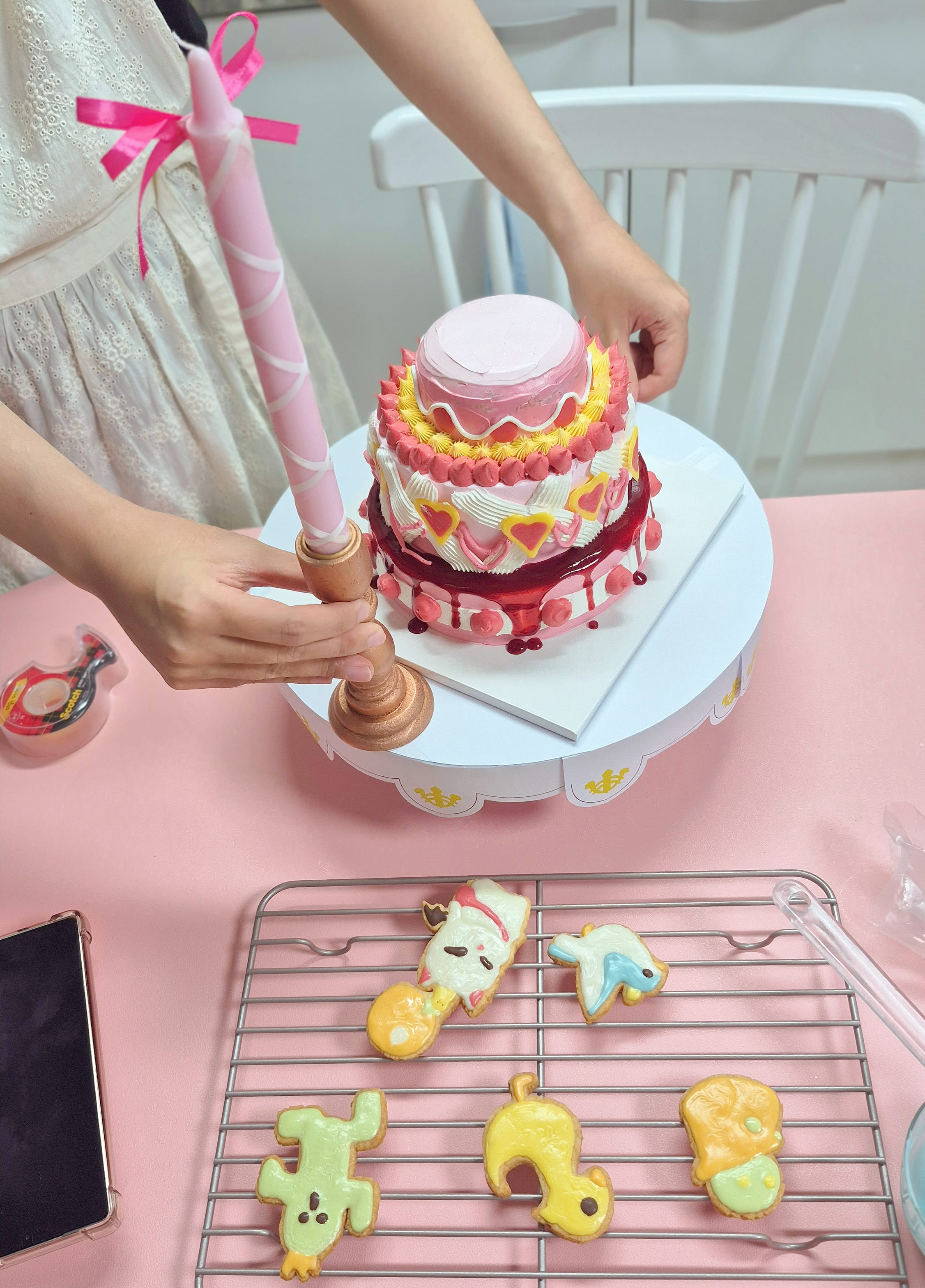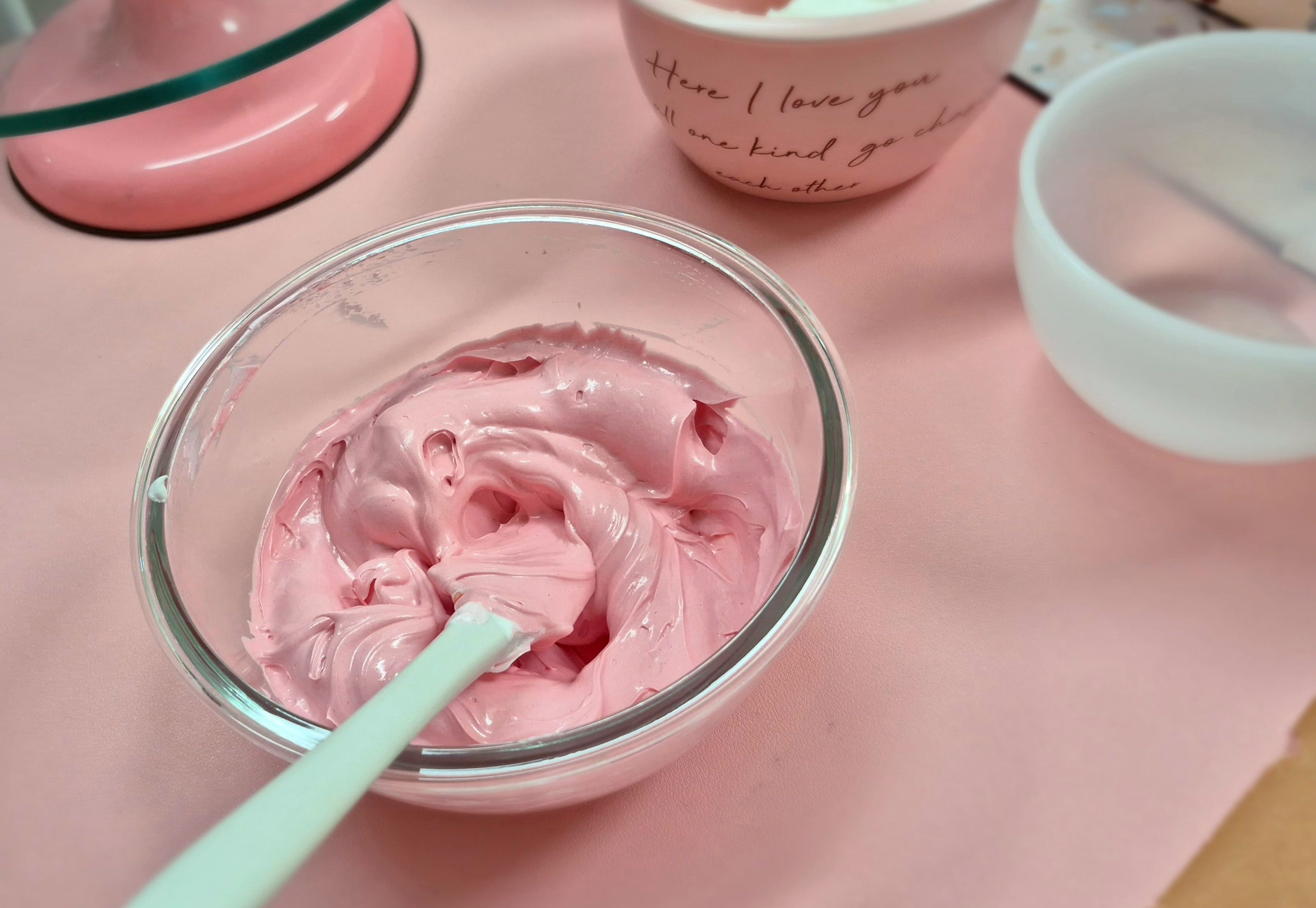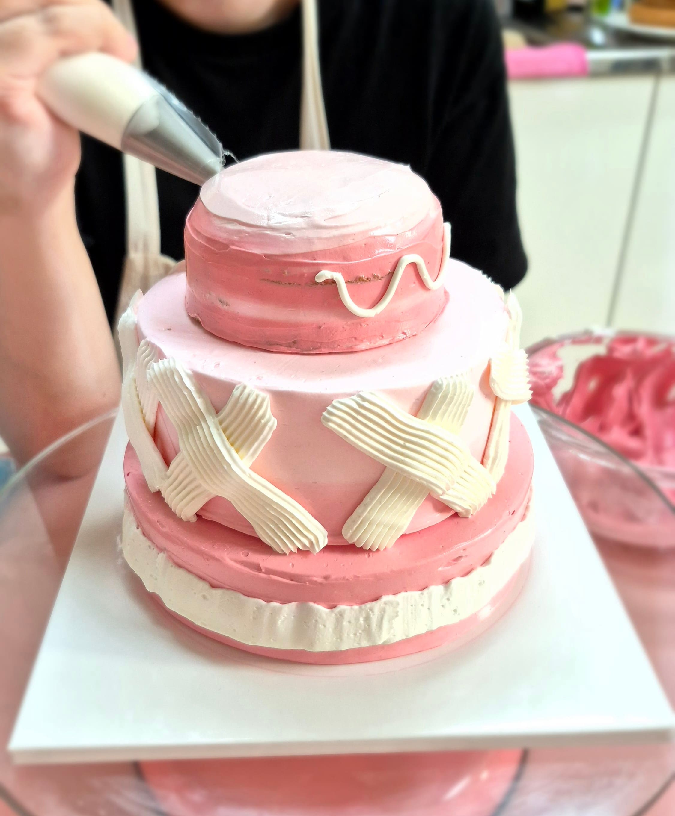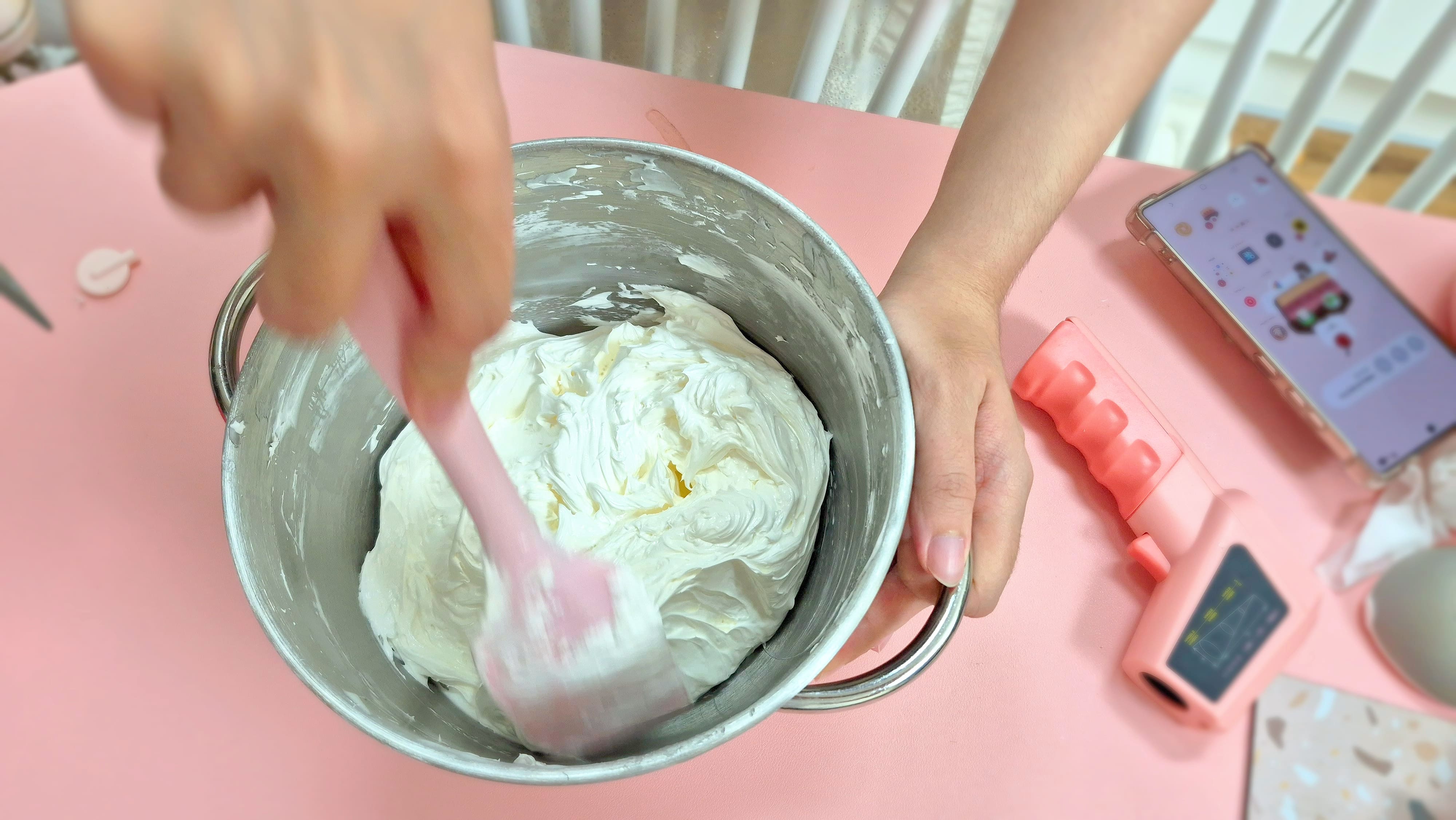 조색 해둔 로즈색 크림으로 본 아이싱을 해줍니다.