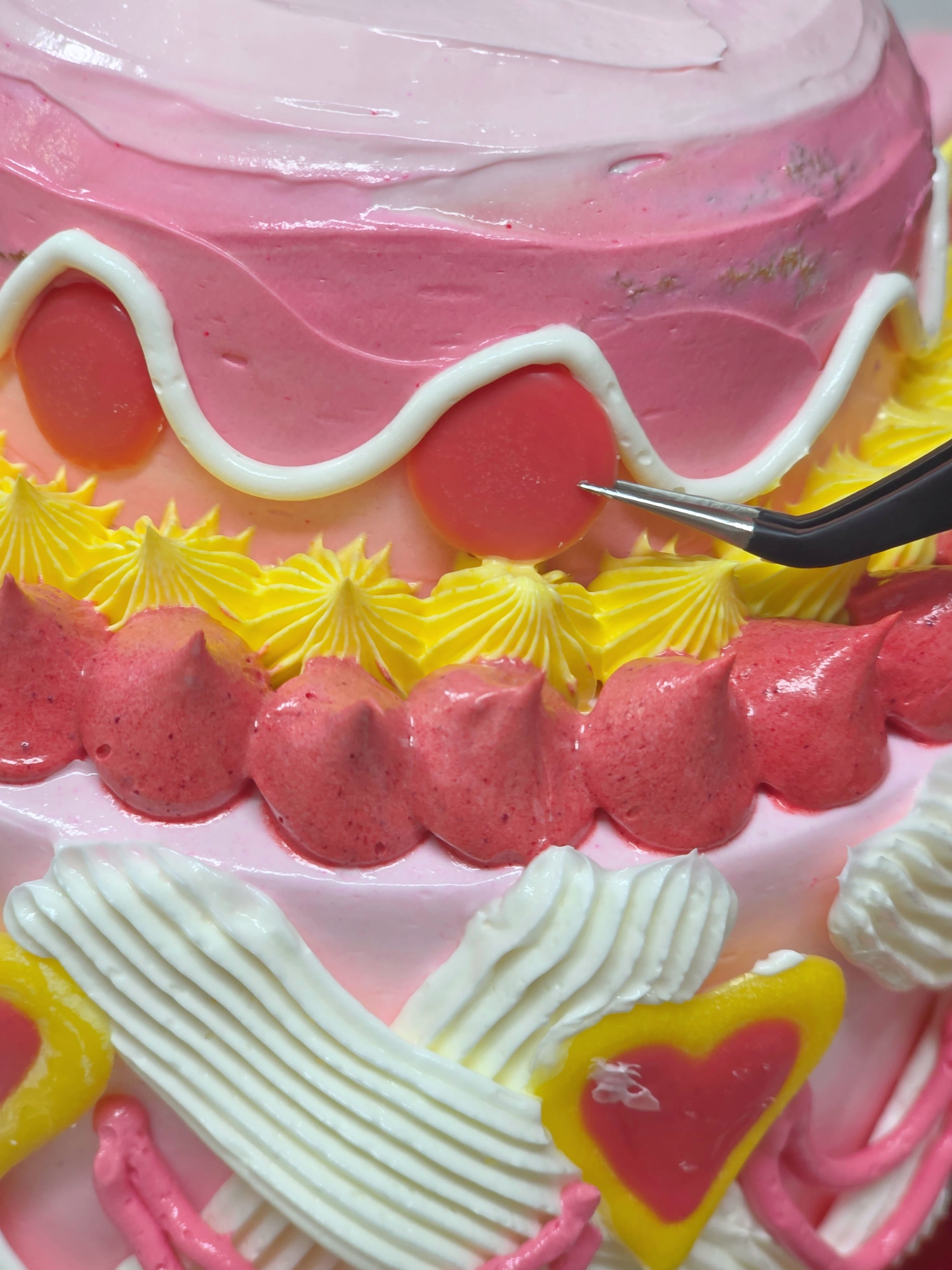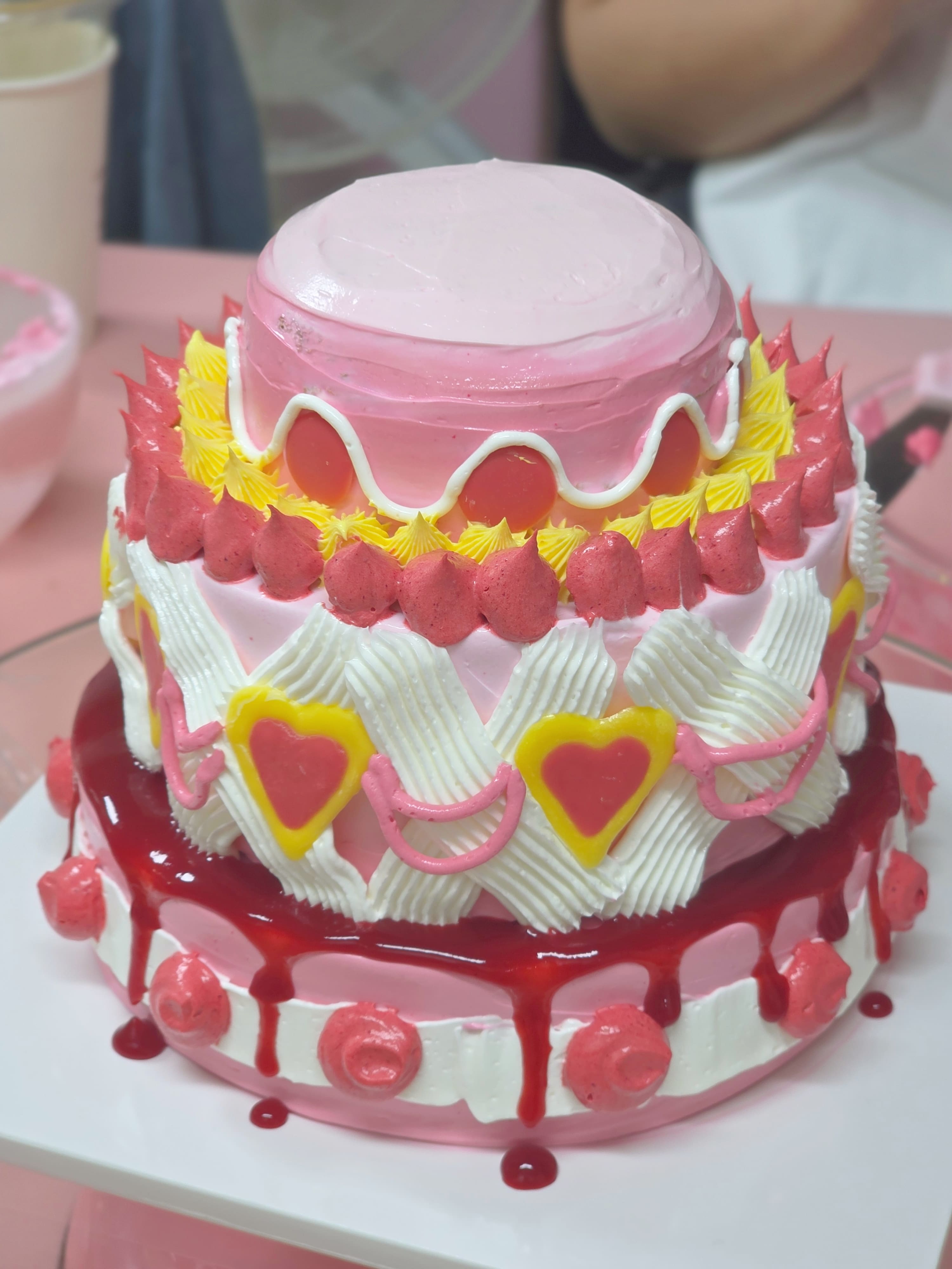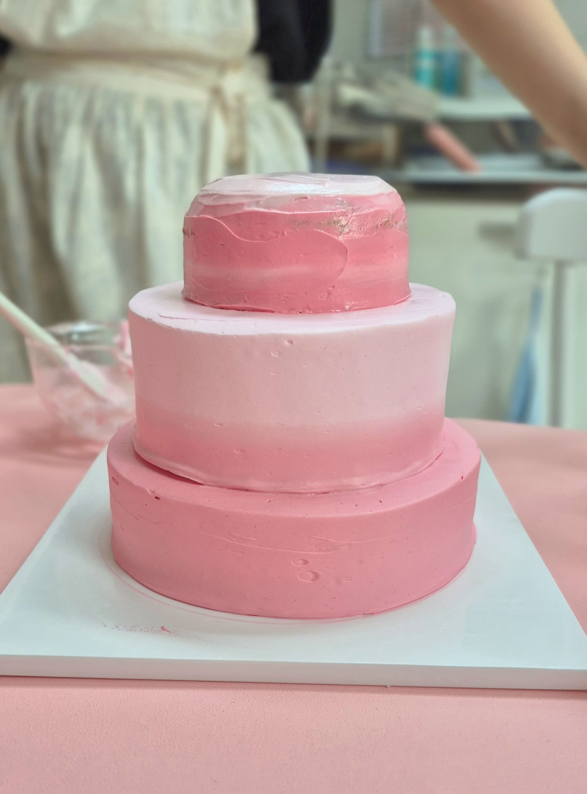 그래서 이번엔 반듯하지는 않지만 돔 형태로 그라데이션 아이싱을 해준 후 맨 윗단에 조심스럽게 올려줍니다.