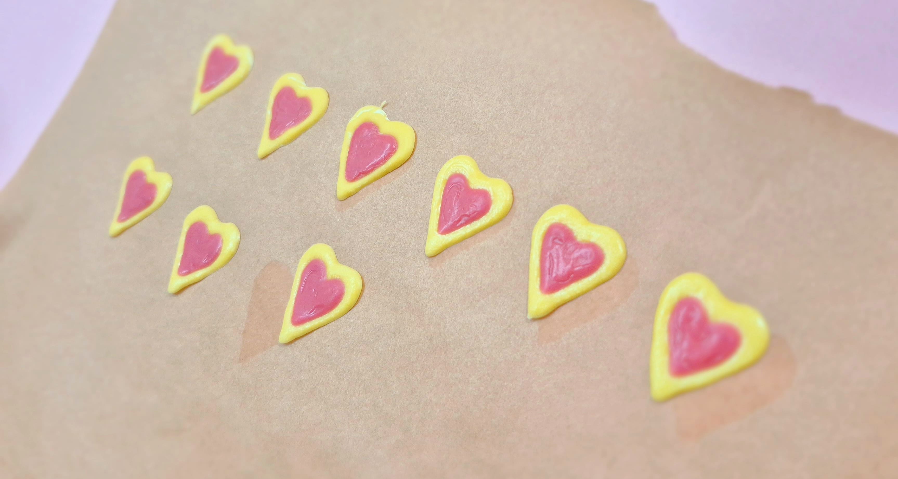 초코 펜을 이용해서 옆 면에 붙일 하트 모양 장식과 원형 장식을 미리 만들어 놨습니다!