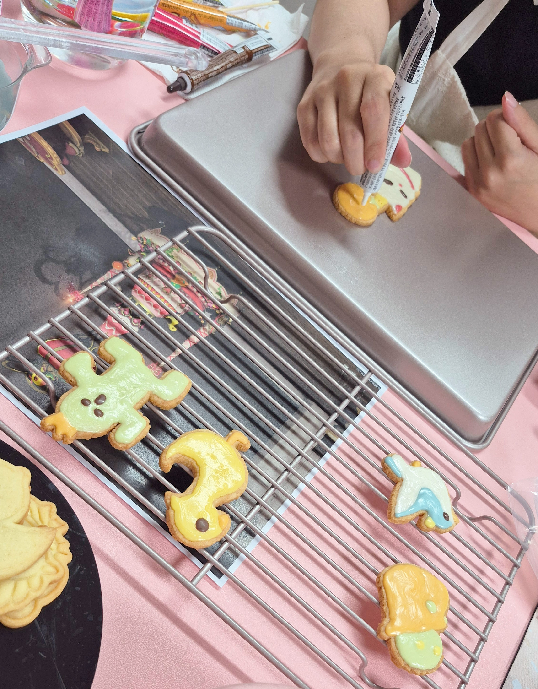 그저 열심히... 열심히 초콜렛을 이용해 만들어 둔 쿠키에 그림을 그려줍니다...