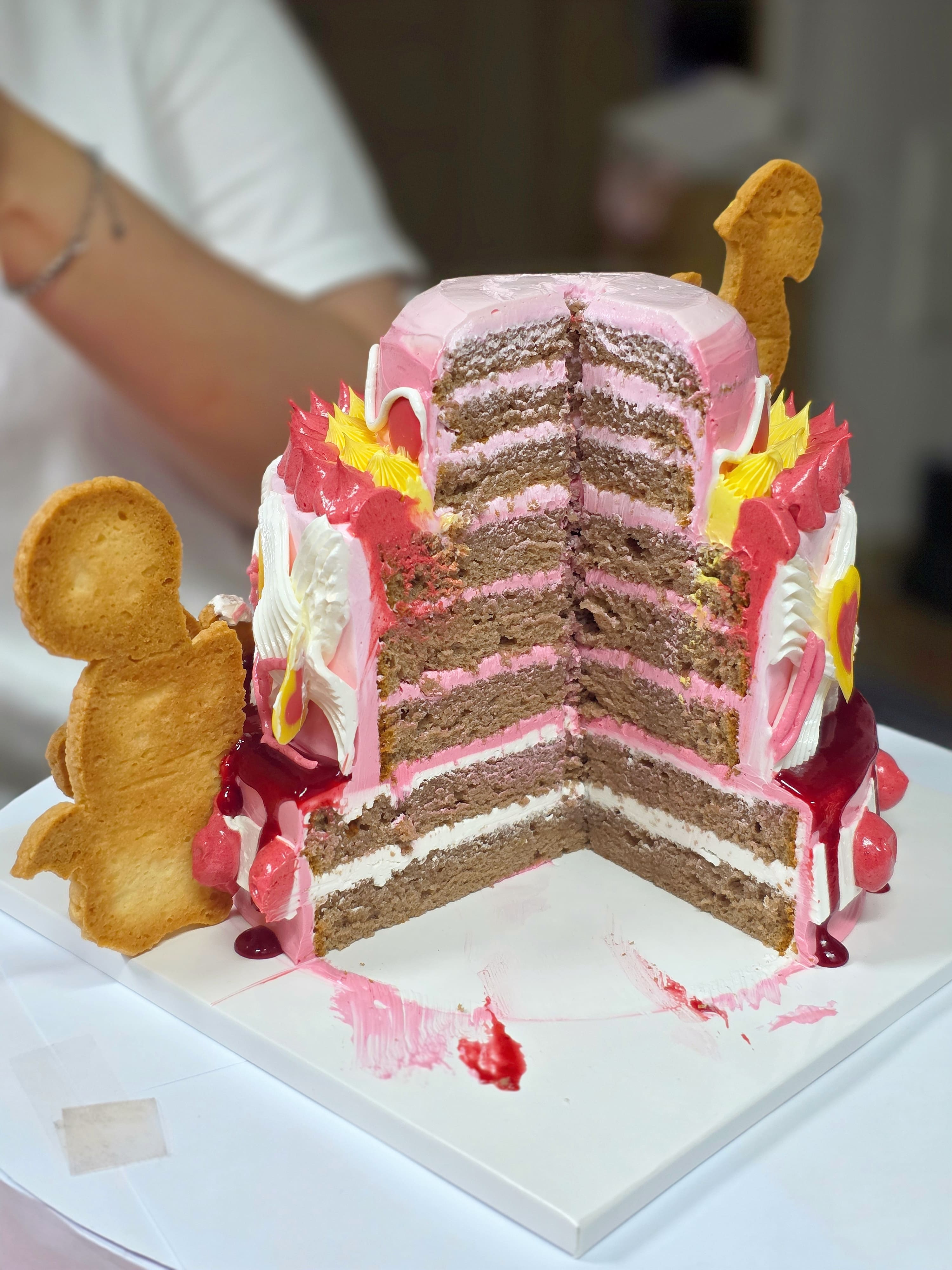 케이크가 꿀리 때문에 미끄러져서 자칫 이 글을 보는 당신의 품에 안겨