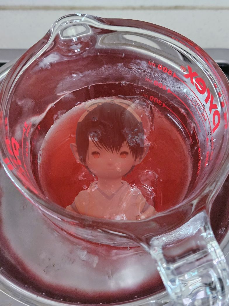 한번 부어준 후 냉장고에 한시간 정도 굳히고 남은 젤리물을 부어 한시간 더 굳혀줍니다.