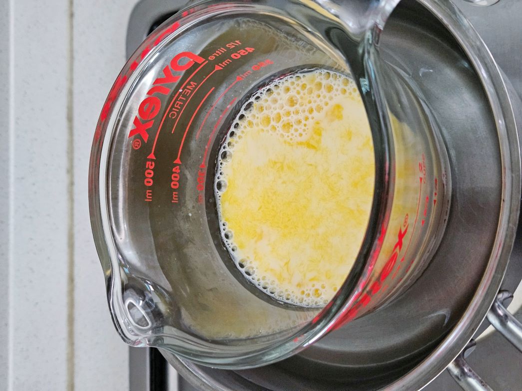 너무 뜨겁지 않은 온도로 뜨뜻미지근한 온도로 중탕하여 젤라틴을 녹여줍시다.