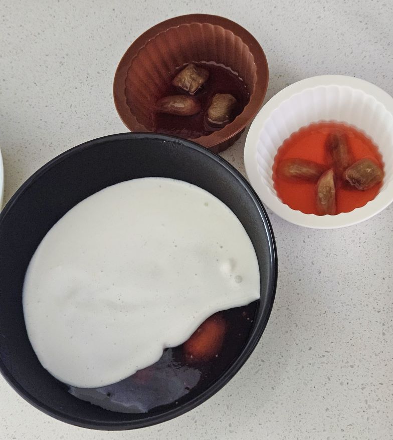 6. 다음날 냉장고에서 꺼내 확인해봅시다! 적당히 잘 굳은거 같으니 올려둘 접시를 준비해줍니다.