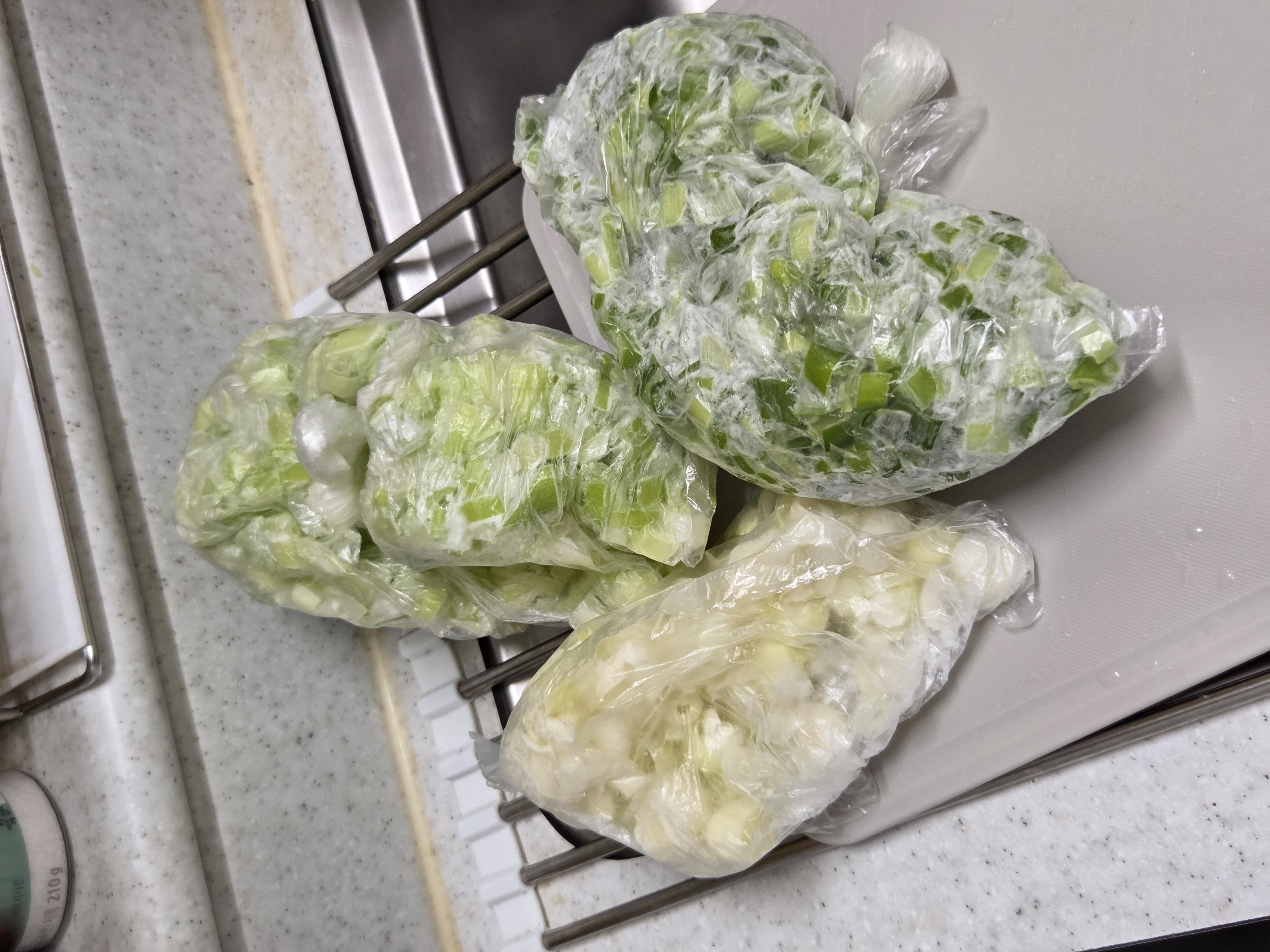 마침 대파가 다 떨어져서 한 단 주문해서 손질을 했습니다. 냉국에는 재료가 심플한 만큼 대파맛이 가장 많이 담긴 흰 줄기 부분만 사용합니다.