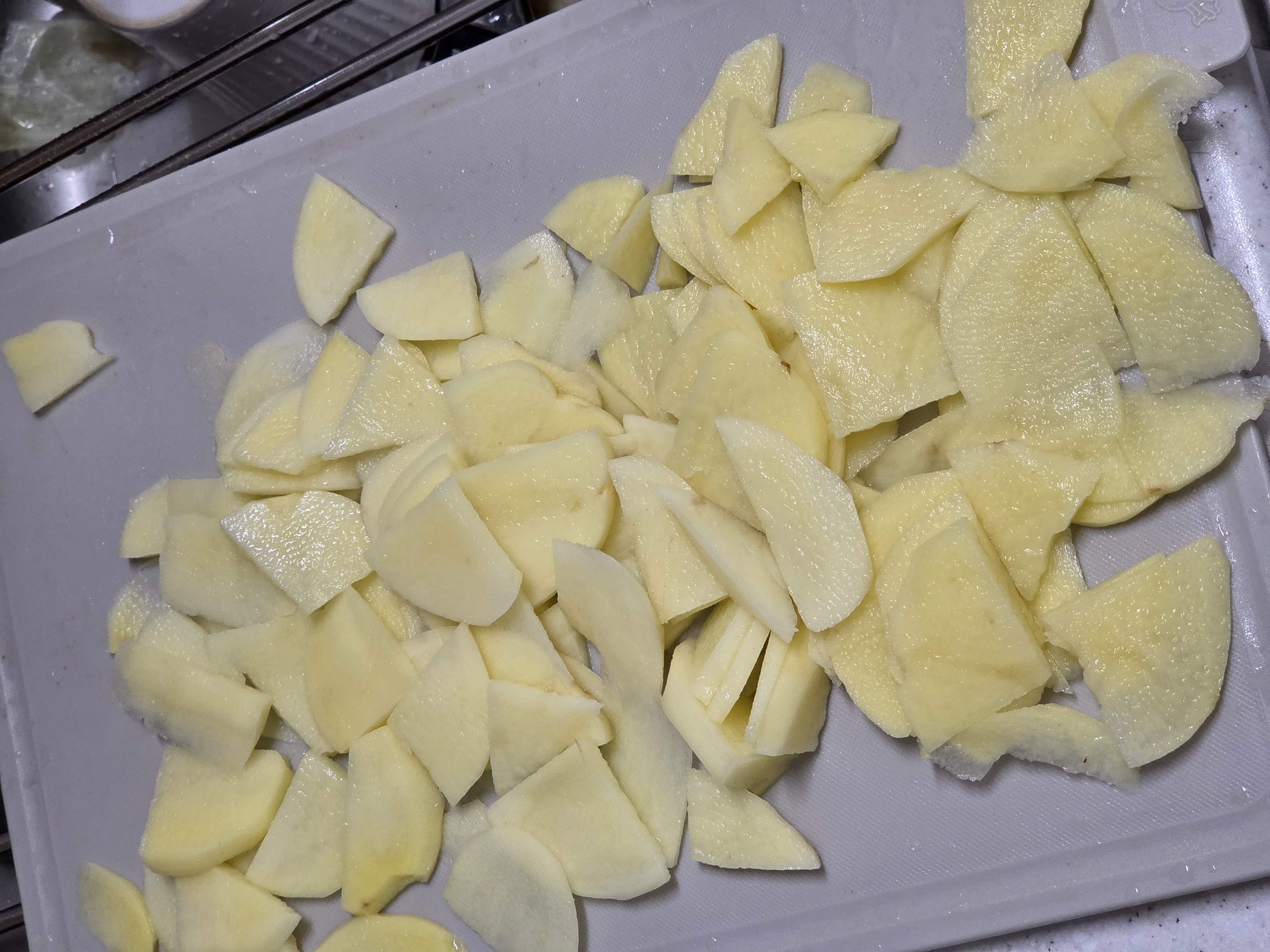 2. 감자는 빨리 익을 수 있도록 최대한 얇게 썰어줍니다.
