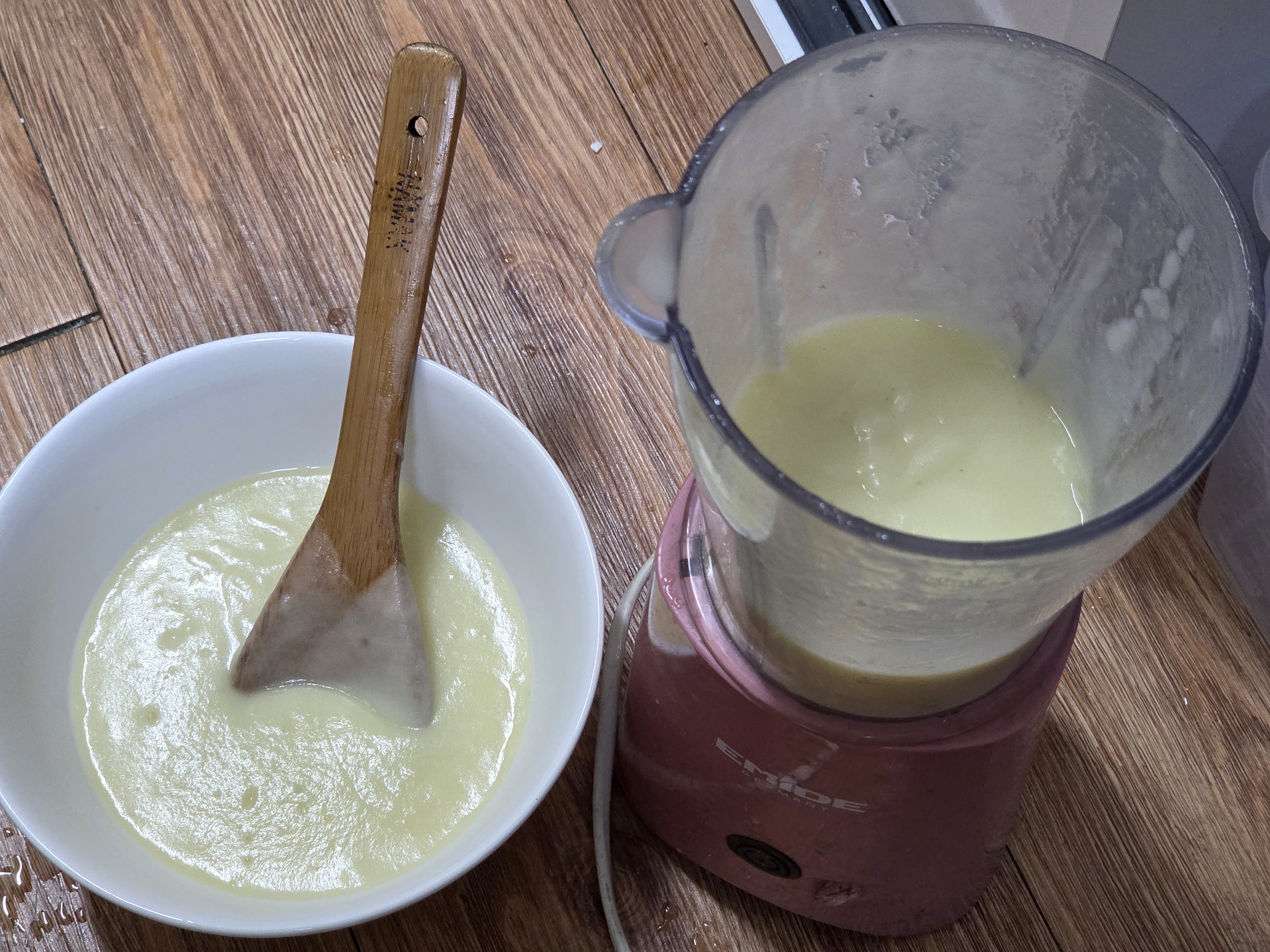 5. 감자가 다 익으면 도깨비 방망이로 으깨줘야 하는데 그런 건 없는 자취생이라 나눠가며 믹서기로 갈아줬습니다. 믹서기로도 곱게 잘 갈려요!