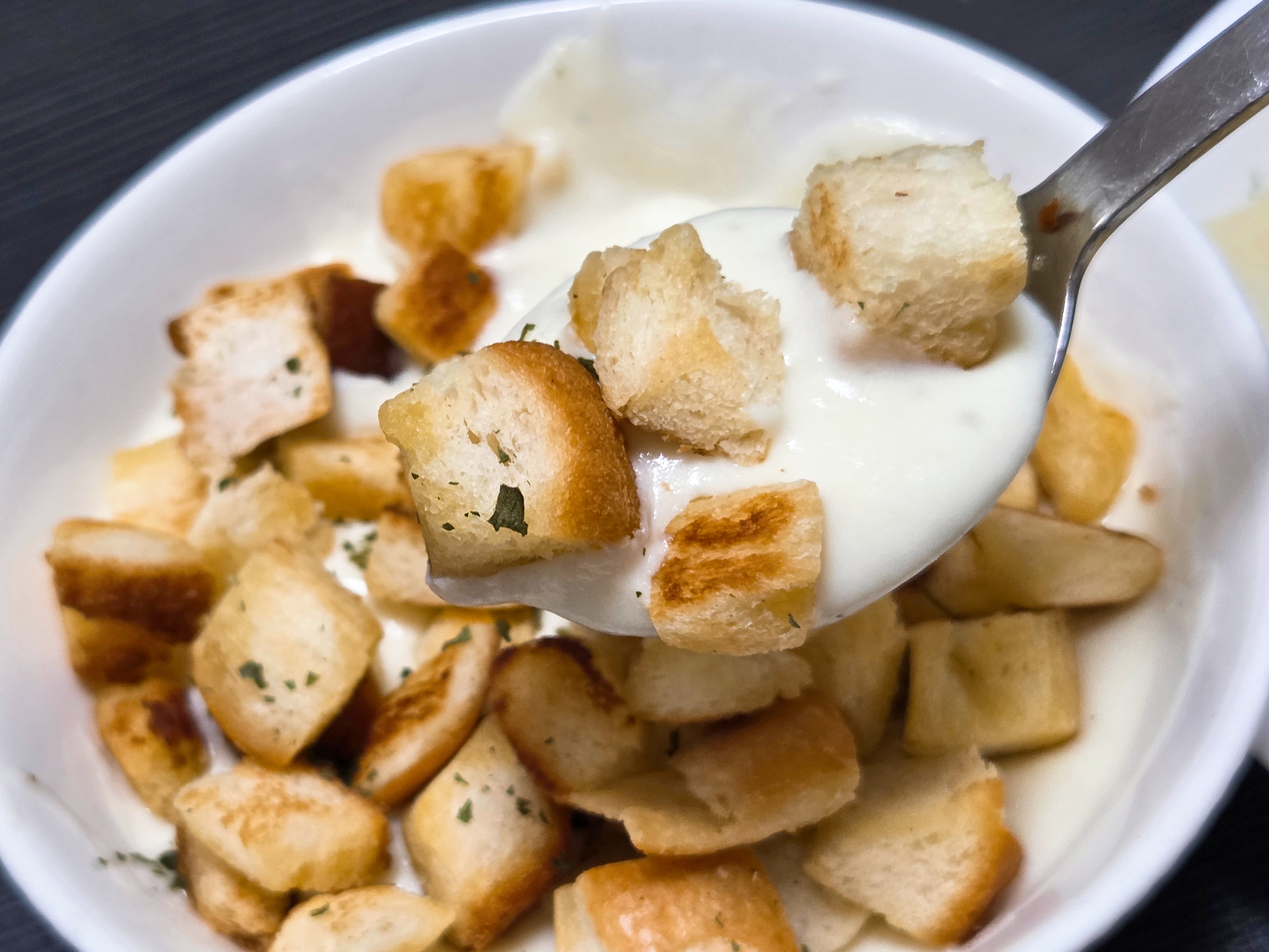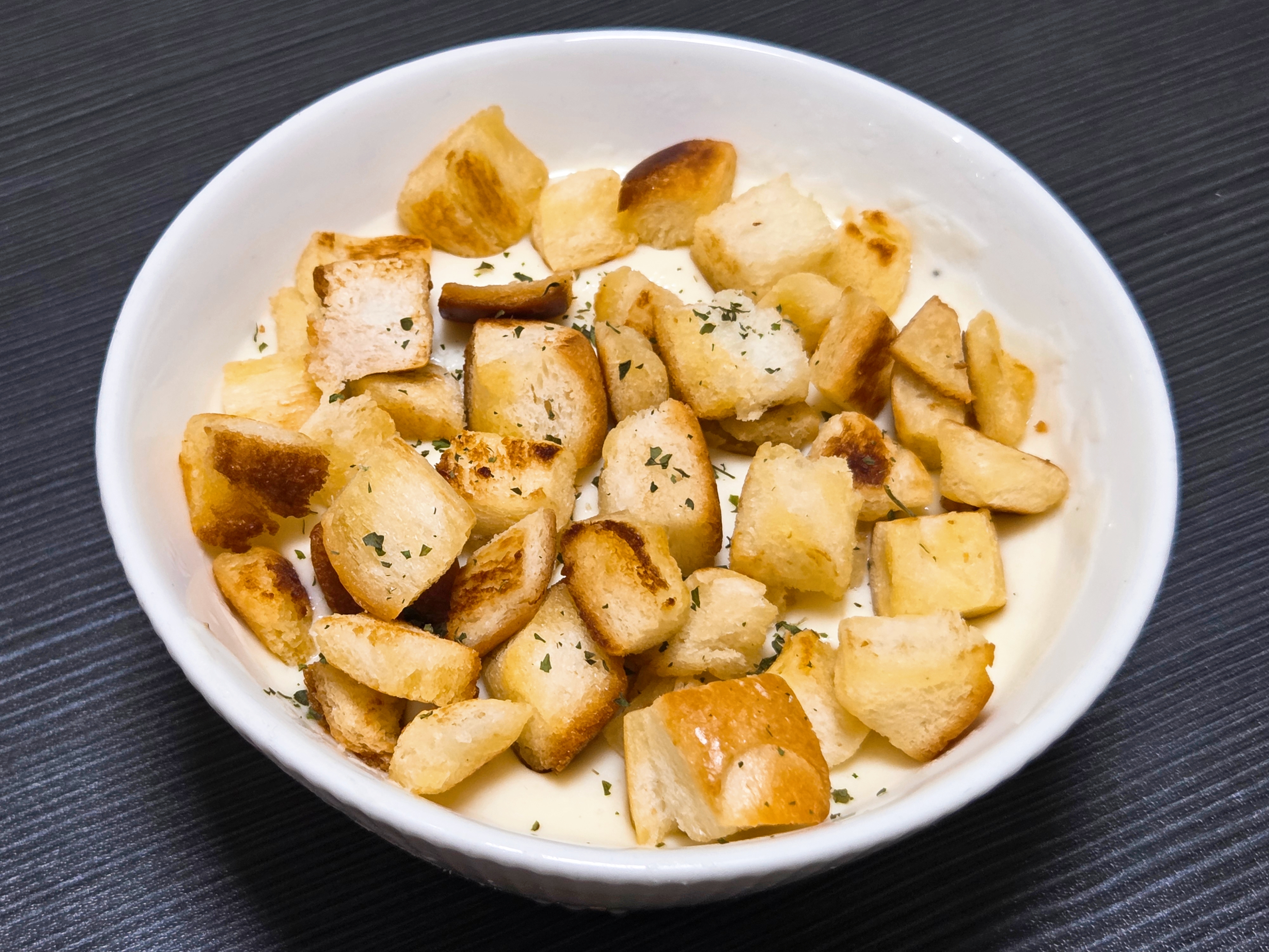 그냥 먹기 아쉬워서 크루통을 만들었습니다