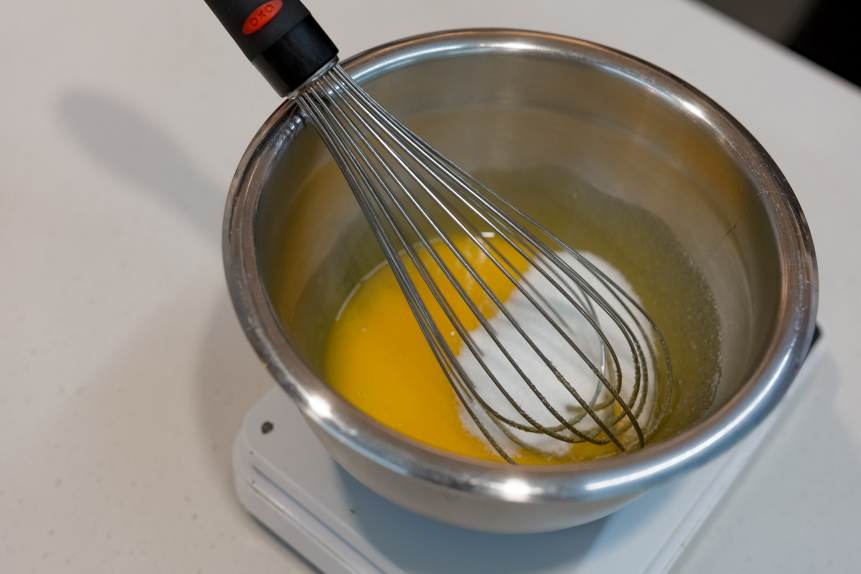 1. 노른자에 설탕을 절반정도 넣고 서걱거리지않을때까지 섞어줍니다