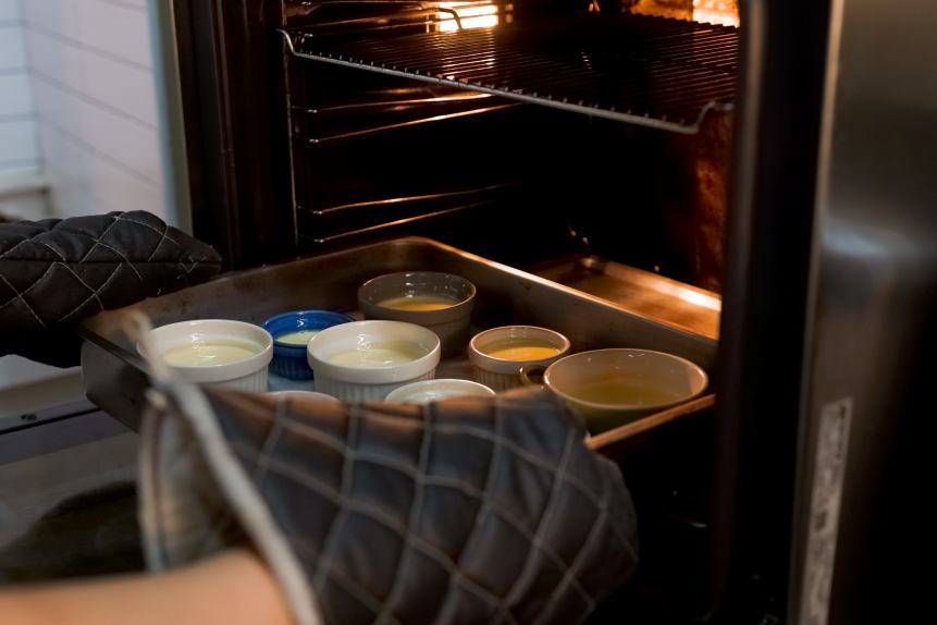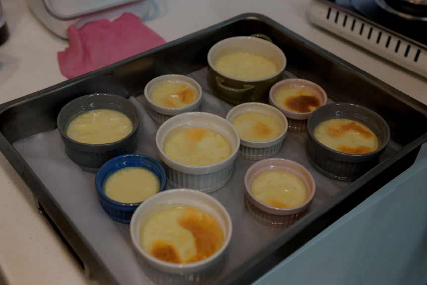 5. 완성된 크렘브륄레는 냉장고에서 3~4시간 식혀줍니다