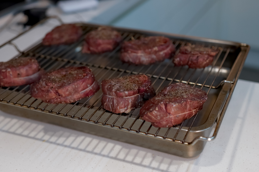3. 로네크안심에 오븐용 온도계를 꽂은다음에 100도 오븐에서 심부온도 50도가 될때까지 익혀줍니다