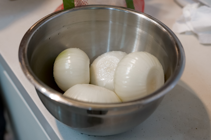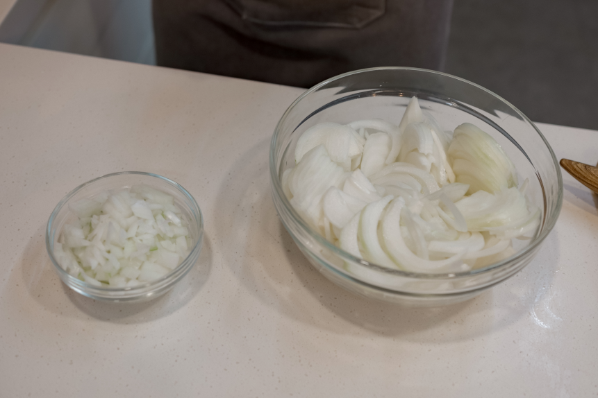 1. 외계양파는 깨끗하게 씻어서 전부 얇게 채쳐줍니다