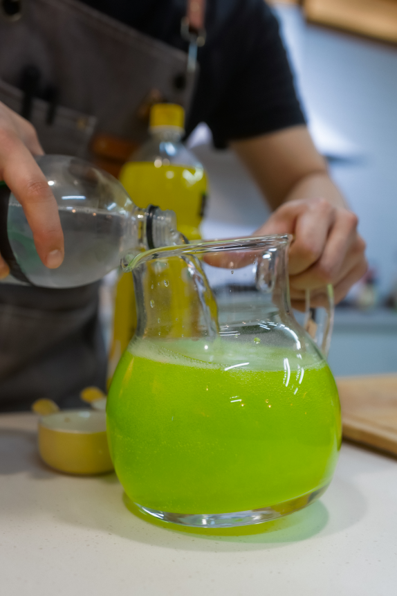 1. 천둥멜론으로 만든 멜론리큐르와 레몬주스,라임즙,탄산 하늘물을 섞어줍니다