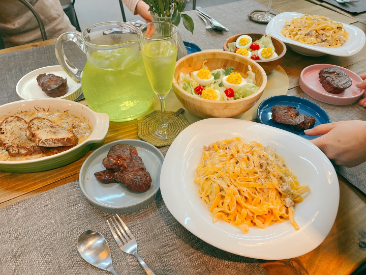 시간안에 만든다고 마지막에 급하게하느라 음료랑 디저트는 같이찍은사진이 없어서 아쉽습니다