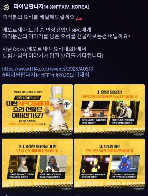 그렇습니다 파이널판타지 요리대회가 다시 열린다는게 아니겠습니까?