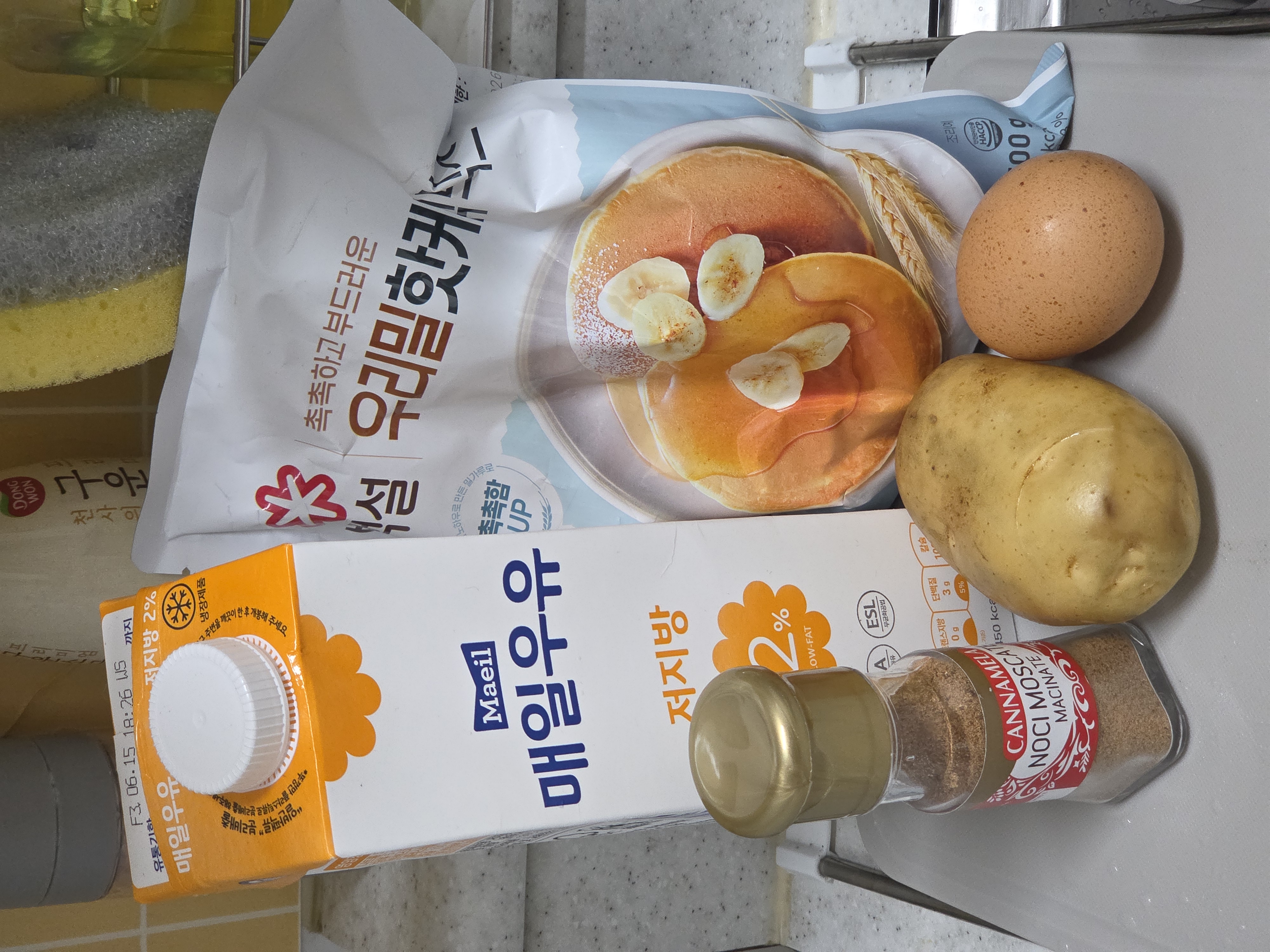 이번 요리대회에 참여하면서 준비한 마지막 포포토 활용 요리입니다. 식사로도 간식으로도 먹을 수 있는 대왕포포토 팬케이크 입니다. 그냥 포포토 팬케이크도 파판 요리에 있지만 굳이 대왕 포포토 팬케이크를 가져 온 이유는 재료 차이가 조금 있더라구요. 그냥 포포토 팬케이크는 사과를 사래요. 사과 깎아먹기 귀찮아서 자취하면서 사과는 단 한번도 사먹지 않은 자취생이기에 사과 없이 만들 수 있는 대왕포포토 팬케이크를 만들어 보겠습니다.