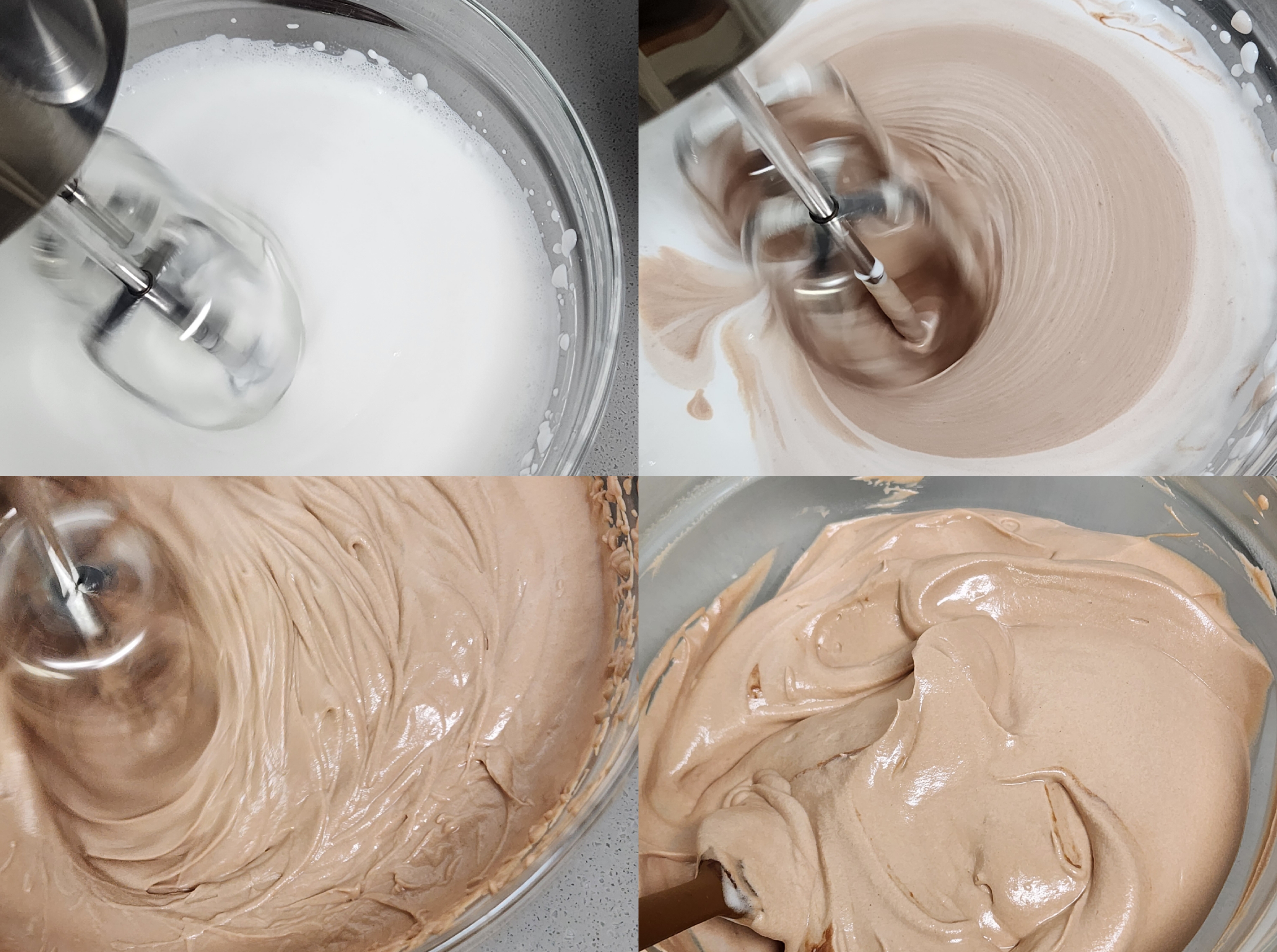 단단하게 충분히 휘핑하여 초코 크림을 완성 합니다.