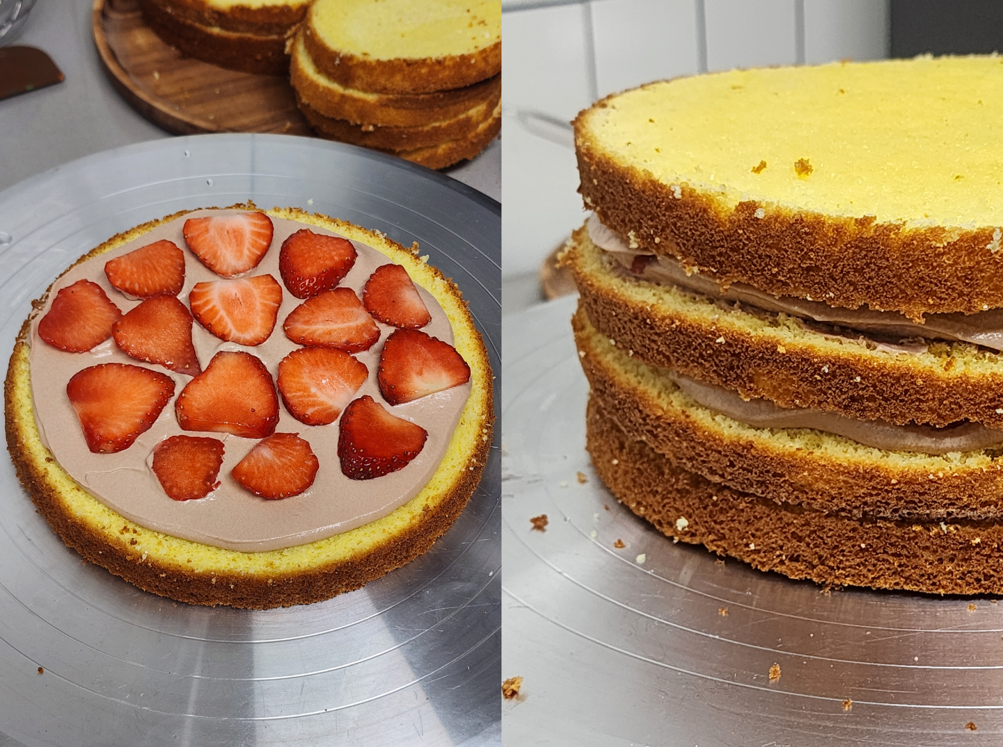 또 다시 그 위에 제누와즈 한 장.. > 시럽 바르기 > 크림.. 반복 해줍니다.