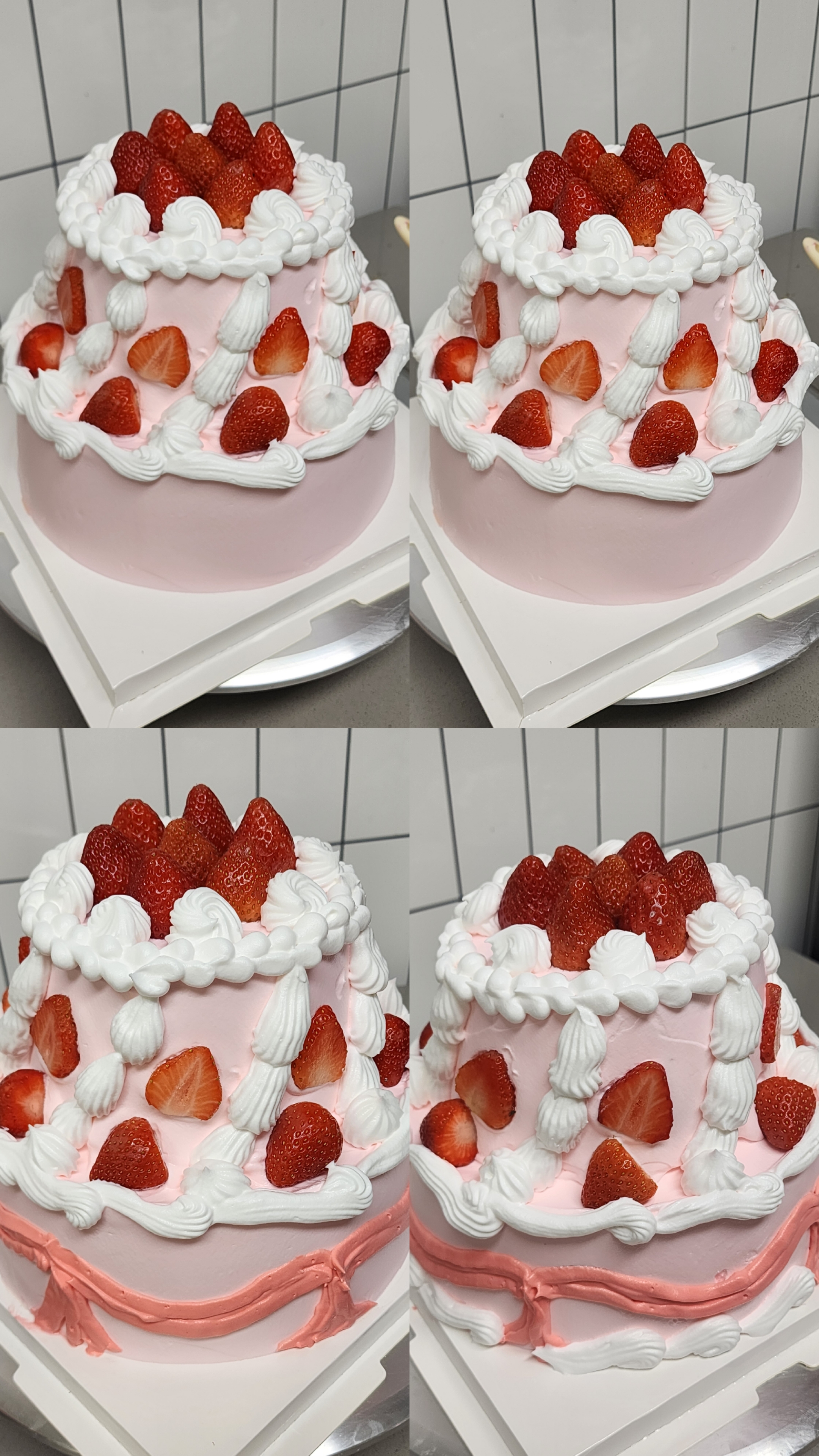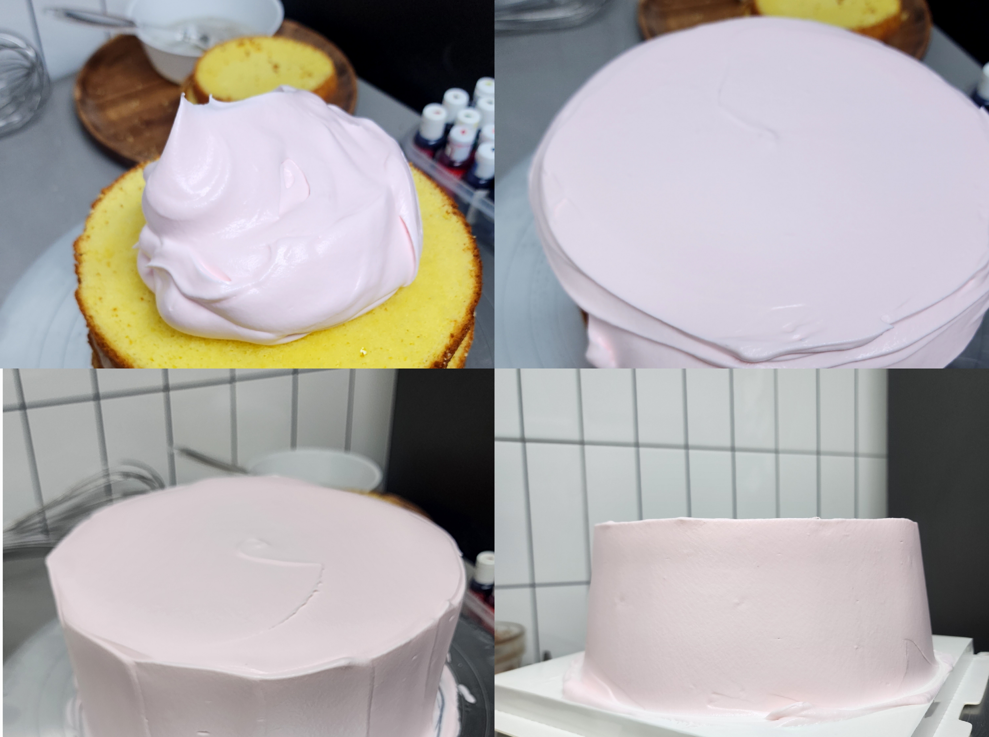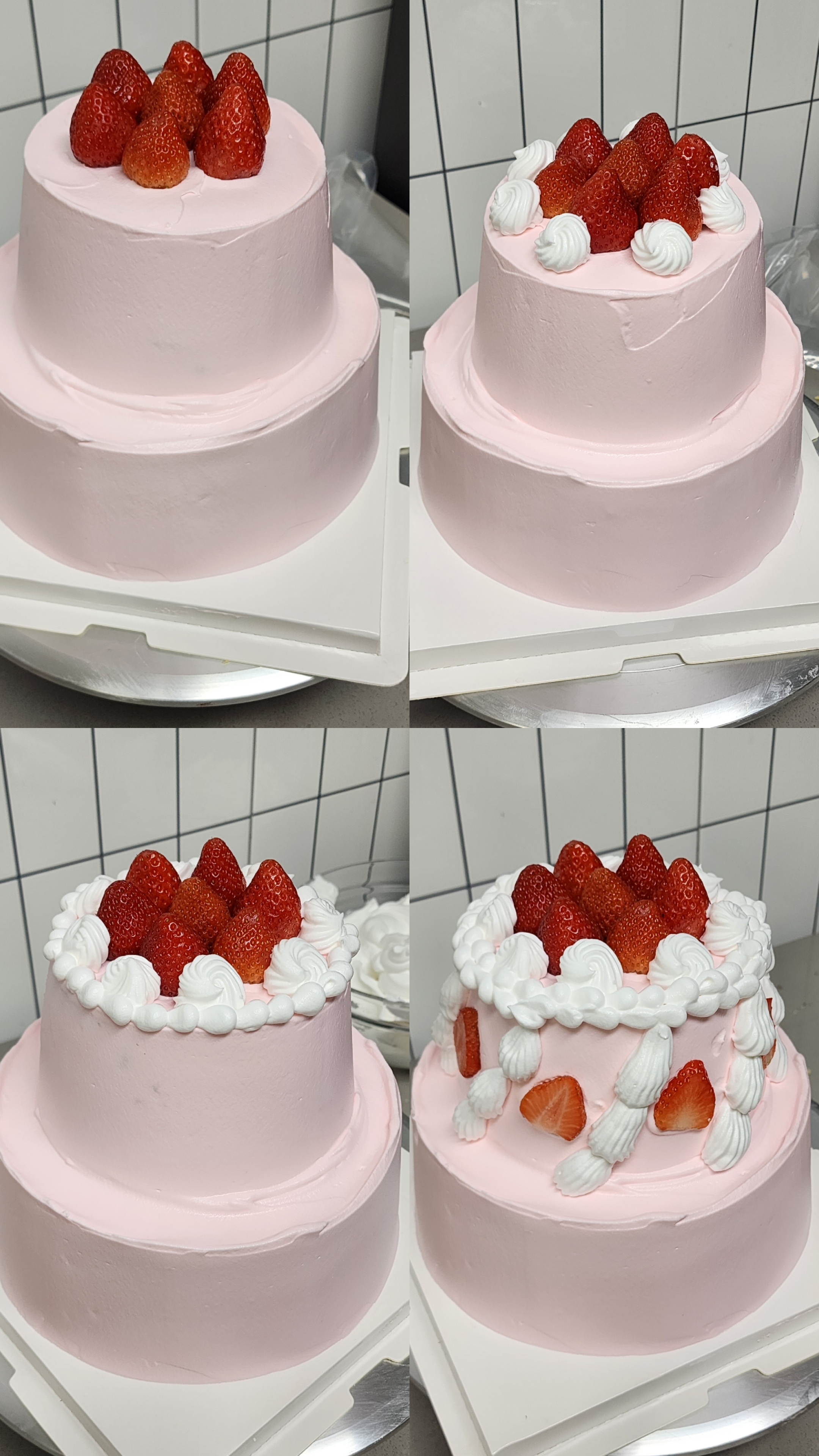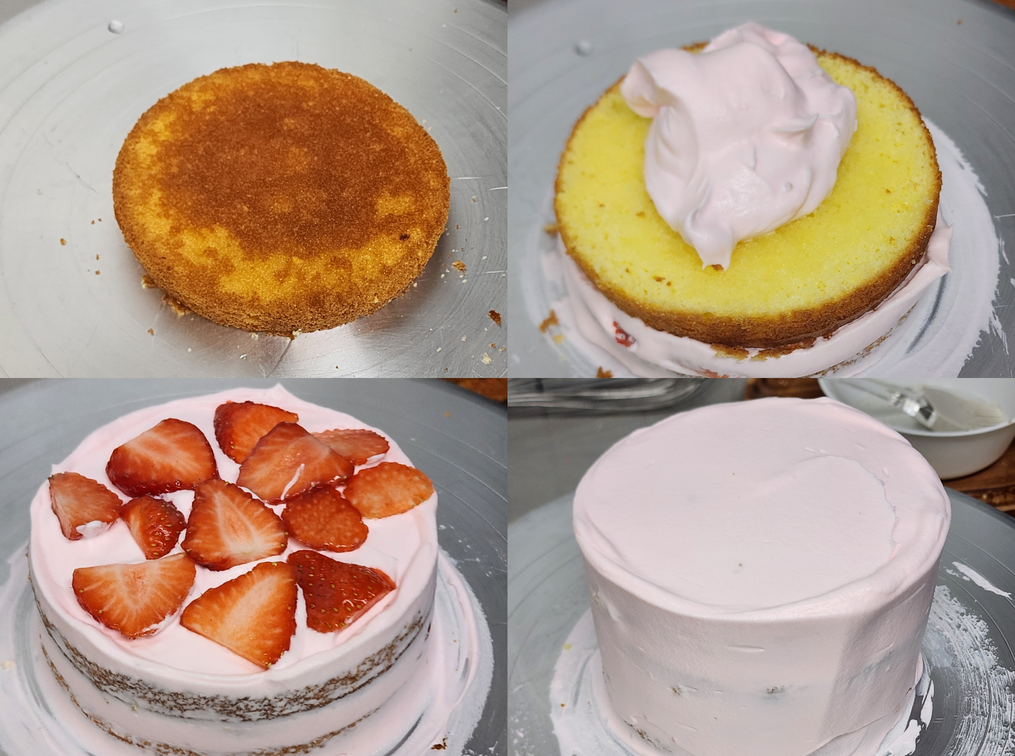 시럽 바르기 > 크림 펼치기 > 복실딸기 > 크림 소량 펼치기 > 제누와즈 반복!