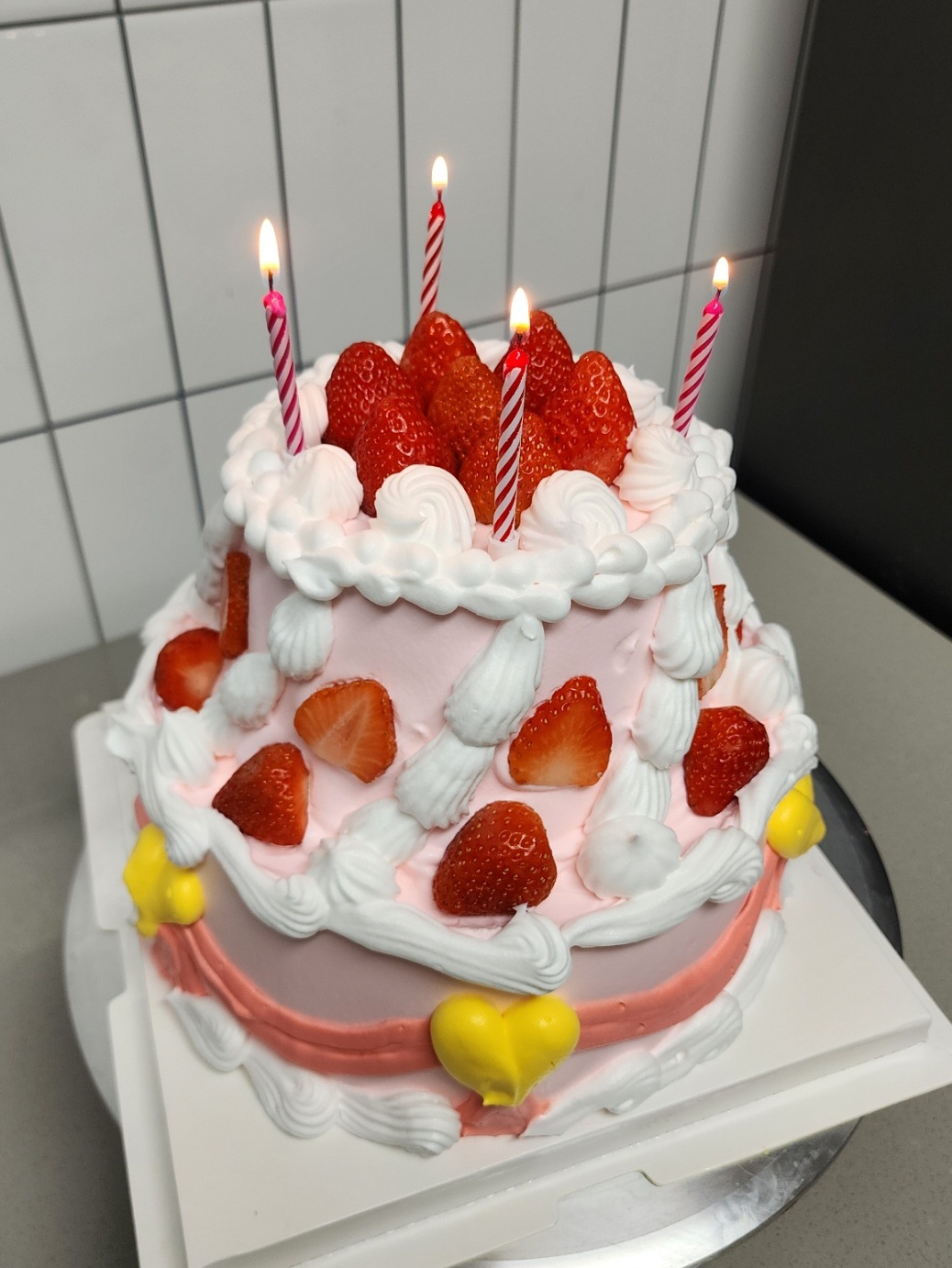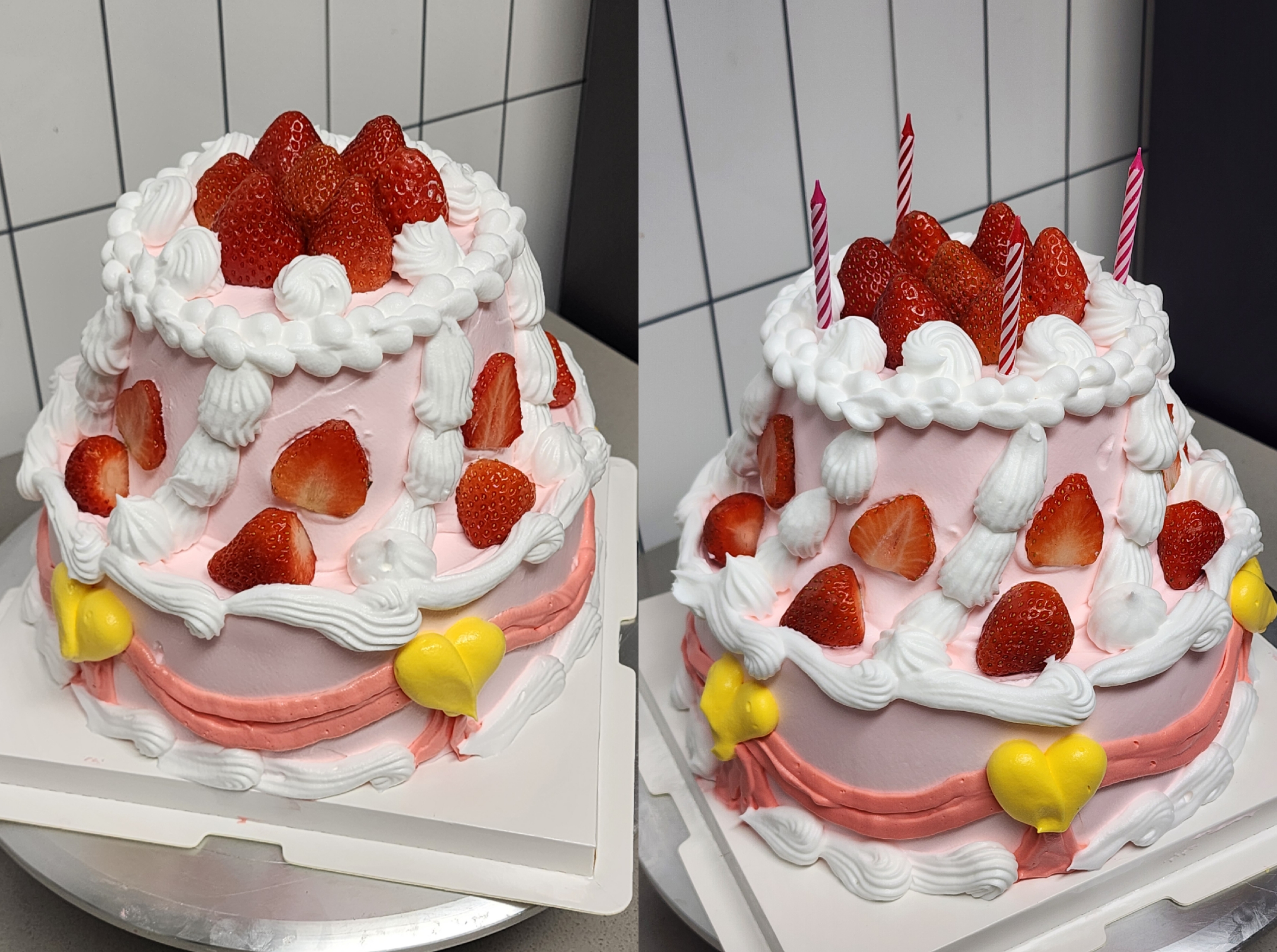 2단 케이크지만 생각보다 간단하게 생겼네요! 단.. 사다리꼴 모양의 케이크군요.