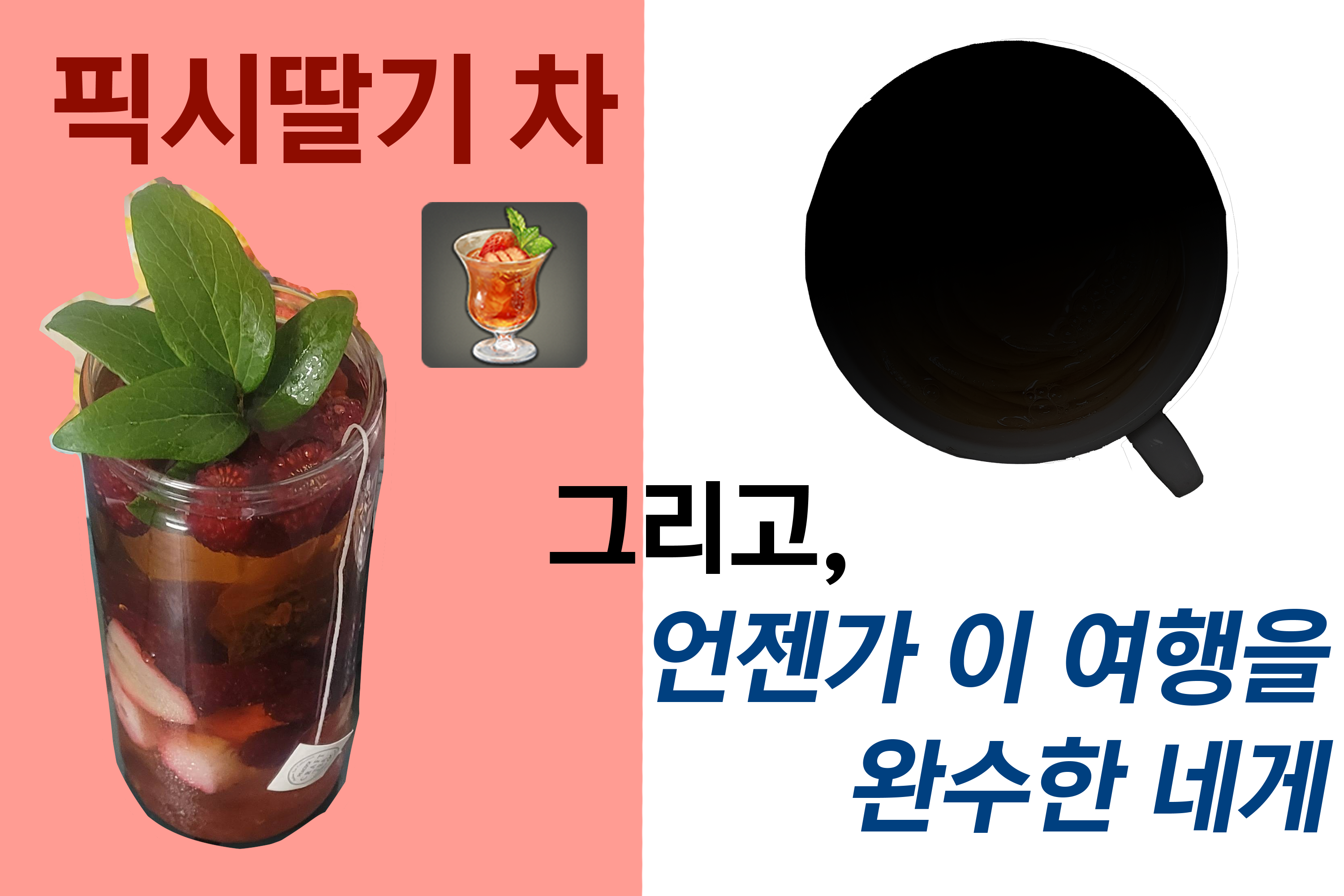 .//흡! 여기까지 다소 오타쿠적인 이벤트 참여였습니다 ... 2번째 요리는 파이널판타지14 요리가 아닌 게 맞습니다! 개인적으로 메테이온에게 꼭 선물하고 싶었던 요리인 것 같네요 언젠가 파판에서도 사과꽃차를 볼 수 있다면 좋겠습니다 ^___^ 읽어주셔서 감사합니다 <o>