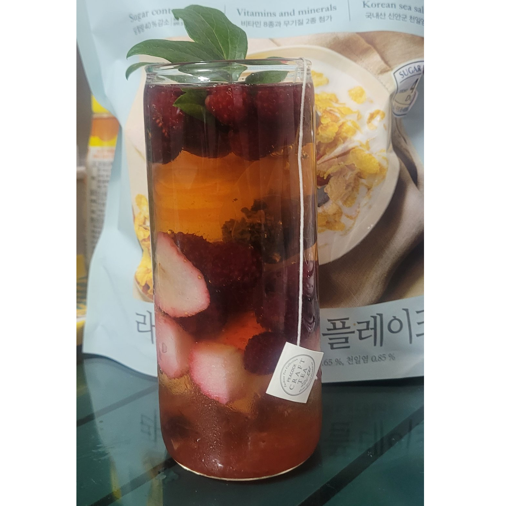 당연하지만 티팩을 차가운 물에 우리는건 무리라서 뜨거운 물에 우리고 얼음을 넣어줬답니다