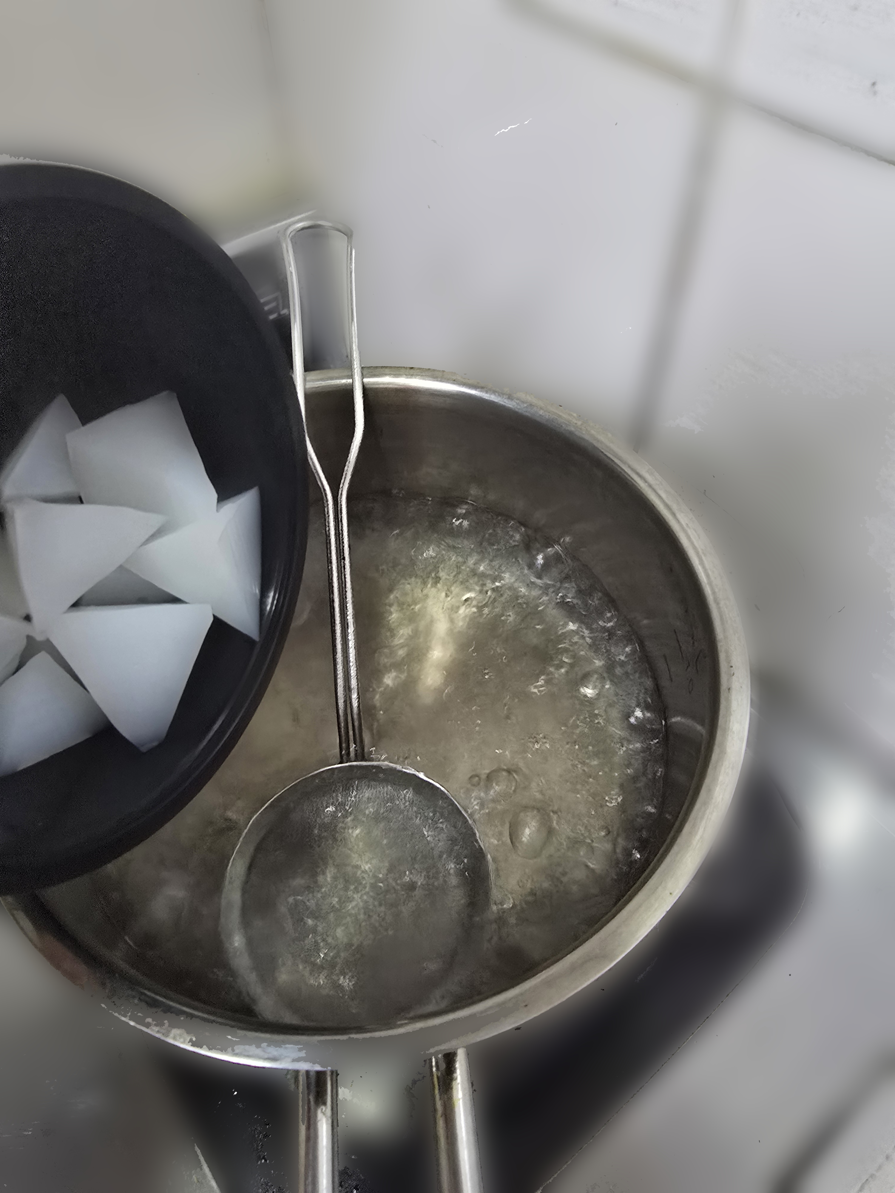물 클러스터가 끓어오르면 투명한 프리즘을 3분간 데쳐준 뒤 차가운 물 클러스터를 사용해 헹궈줍니다.