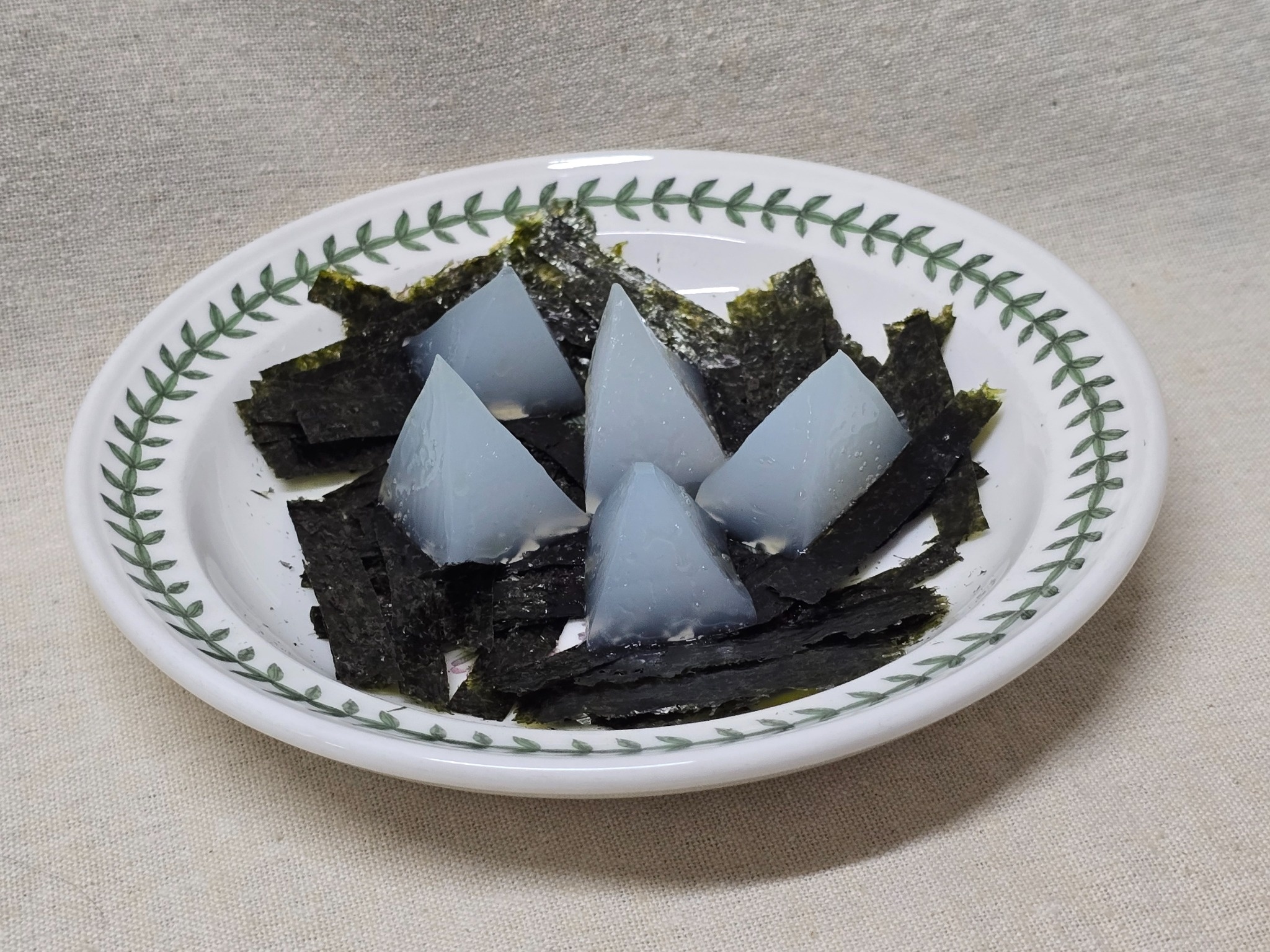 프리즘은 청포묵을 사용해서 만들었습니다. 남은 재료는 간장과 김가루에 비벼서 먹었습니다.