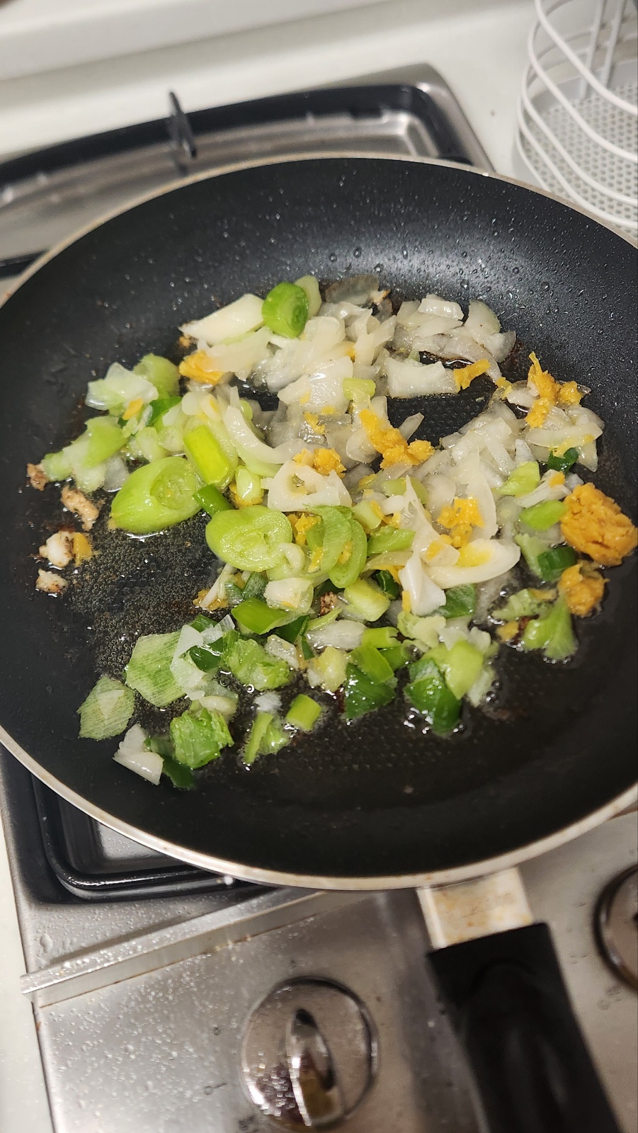 조금 더 다져준 양파와 파,다진생강,마늘을