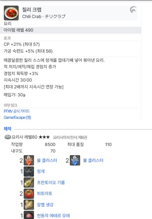 사실,저는 해산물을 꽤나 좋아하는 편이라서 파판14에 나오는 해산물 요리들도