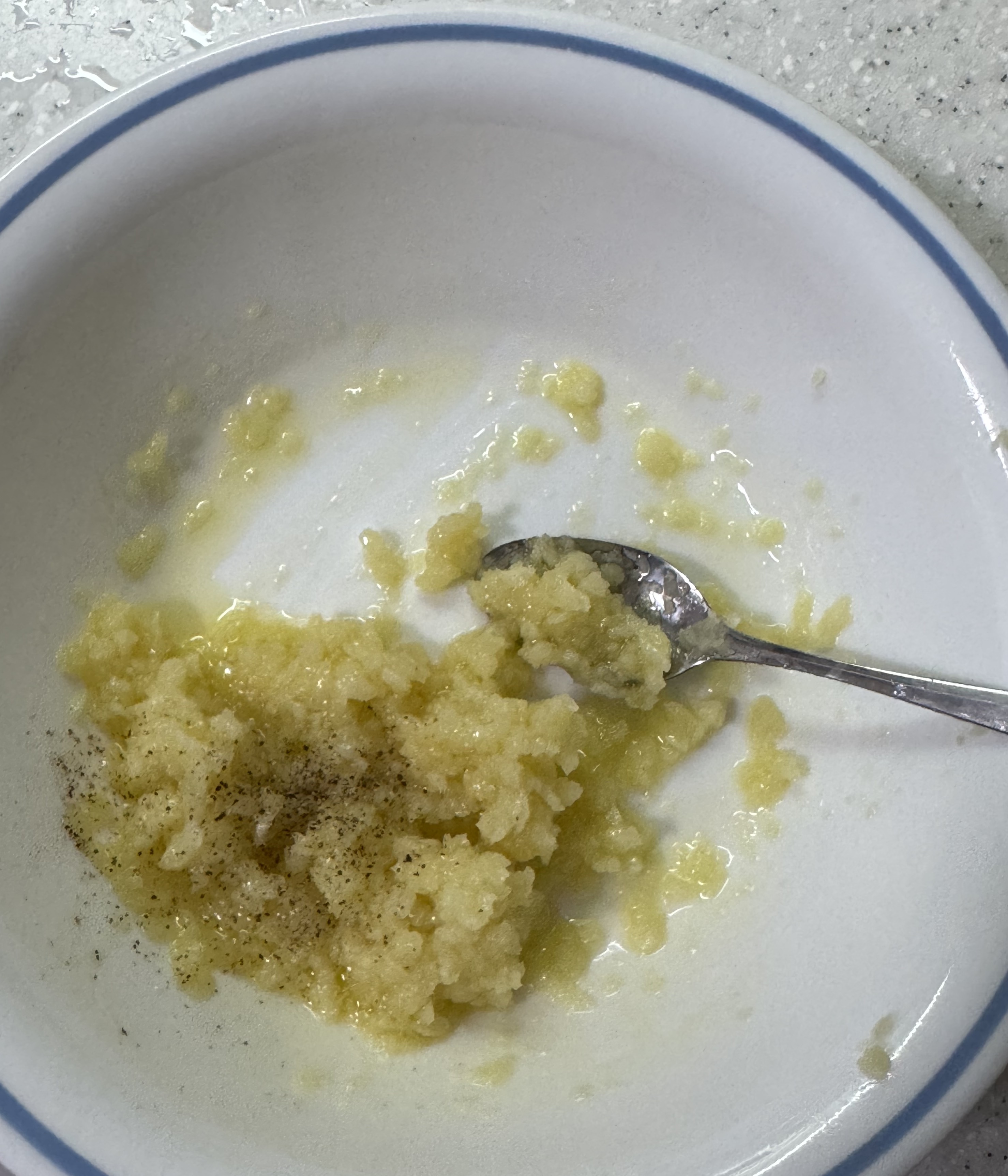 다진 마늘, 올리브유, 그리고 순후추를 톡 뿌려주면 되는데 저는 뚜껑열린줄 모르고 톡 뿌렸다가 순후추의 산이 됐습니다.