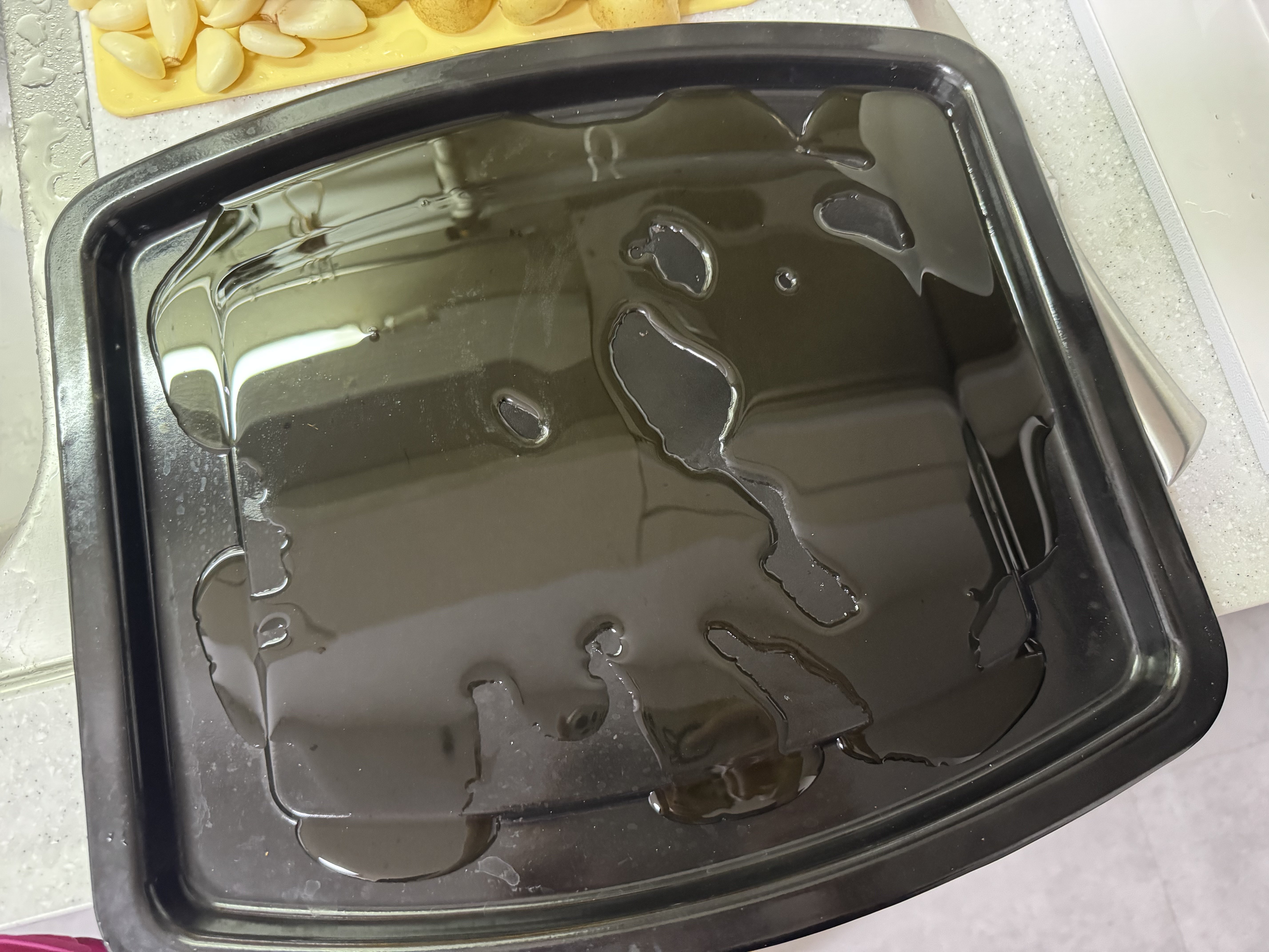 오븐 팬에 올리브유를 부어줍니다.