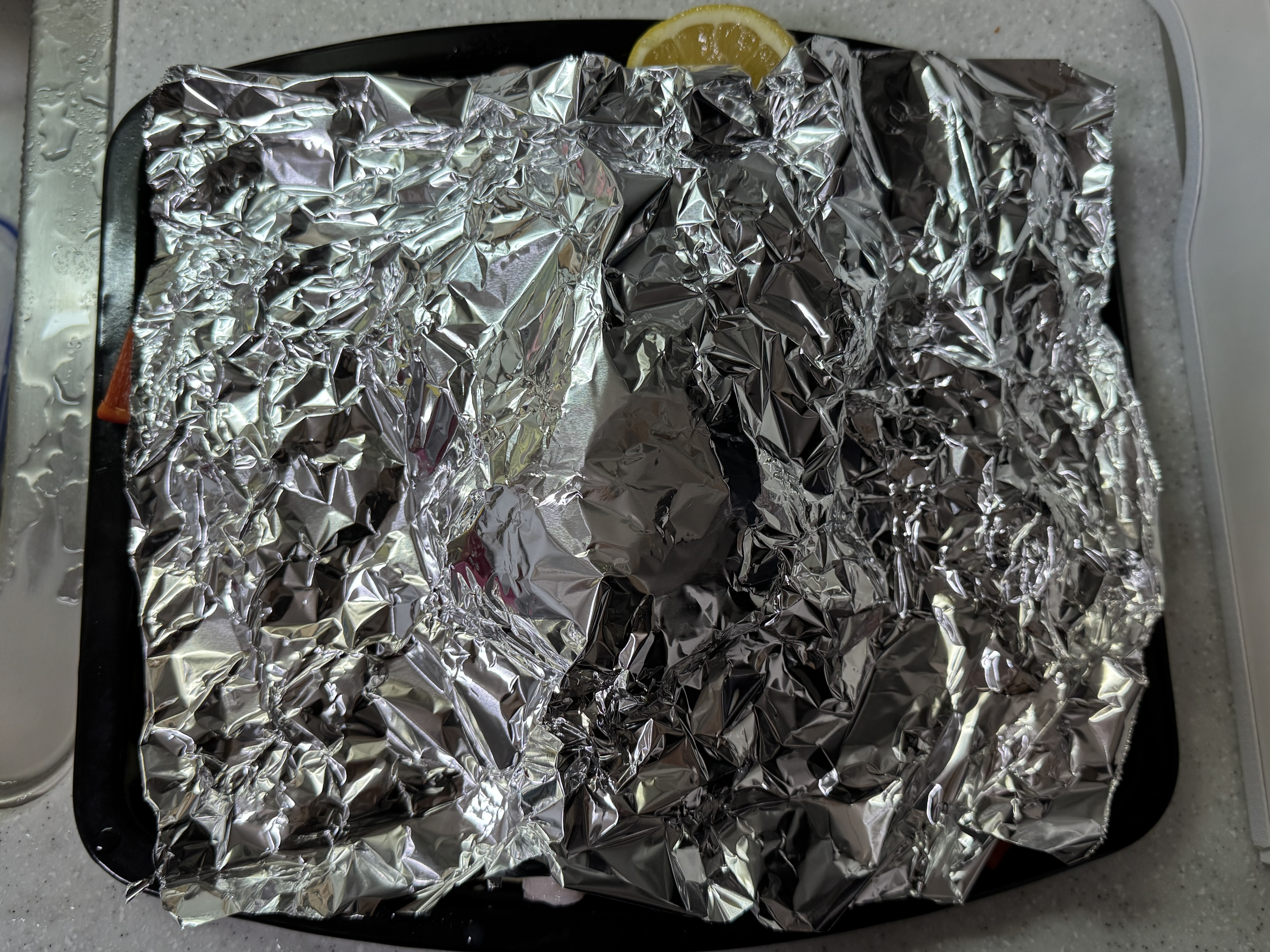내용물을 전체적으로 호일로 감싸서 오븐에 넣어주었습니다.