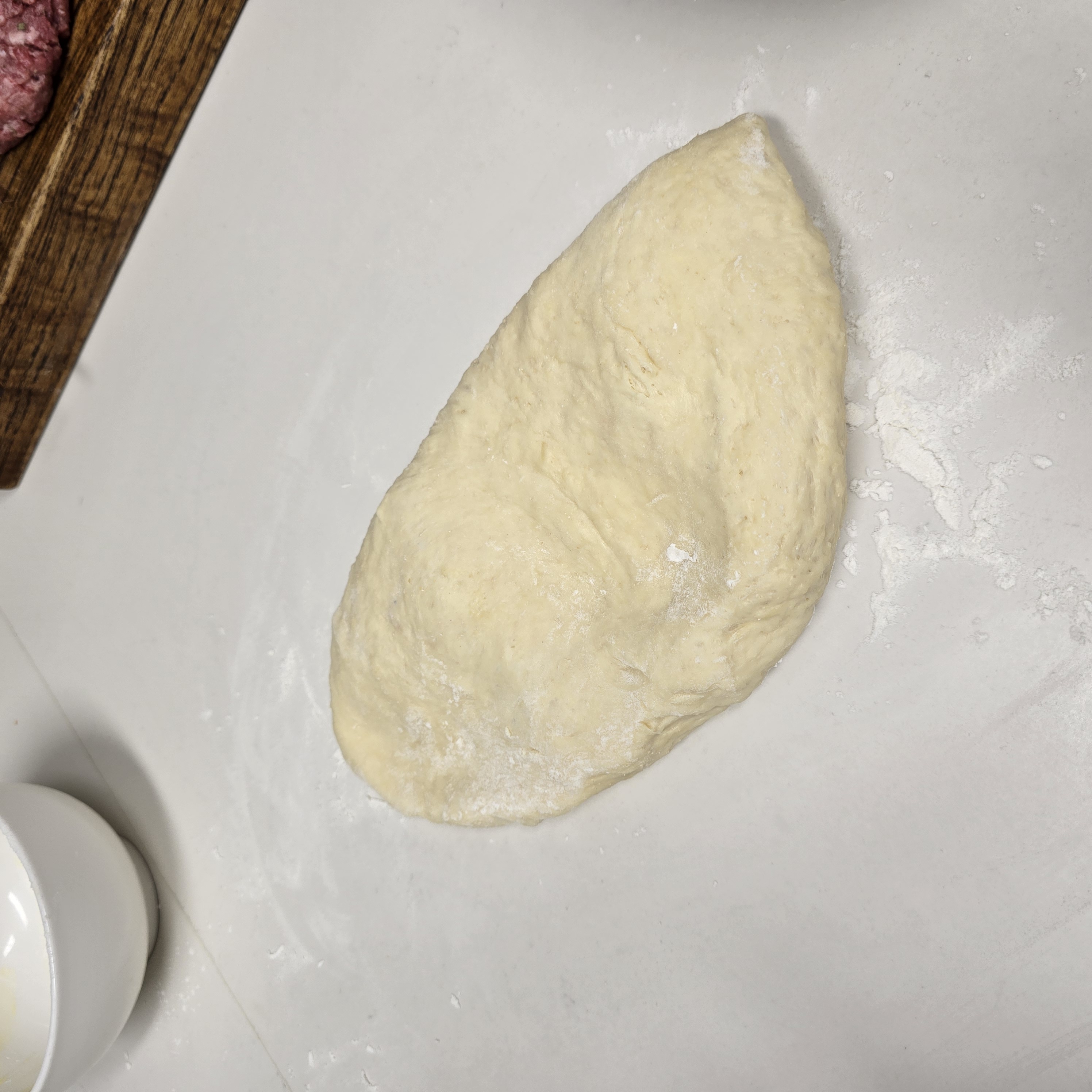 5. 반죽중앙을 찔러본 후 상태를 보고 고지대 밀가루를 뿌려 반죽을 쳐준 후 세 등분을 합니다.