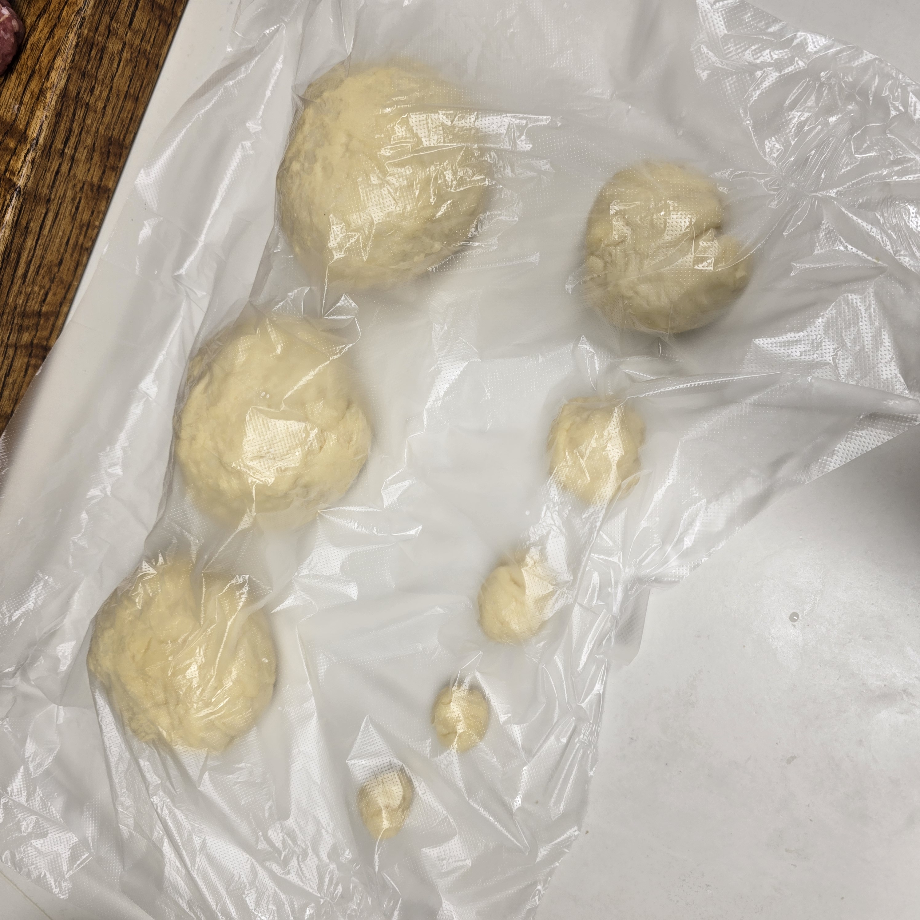 2. 패티 반죽을 셋으로 나눕니다. (작은 반죽은 무시해 주세요)