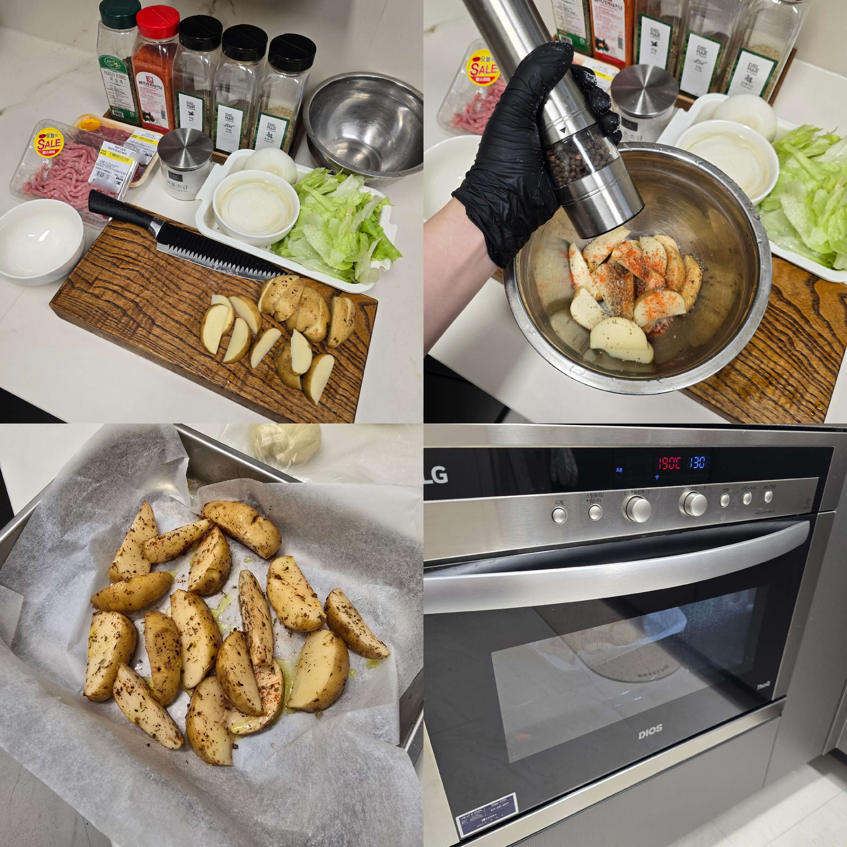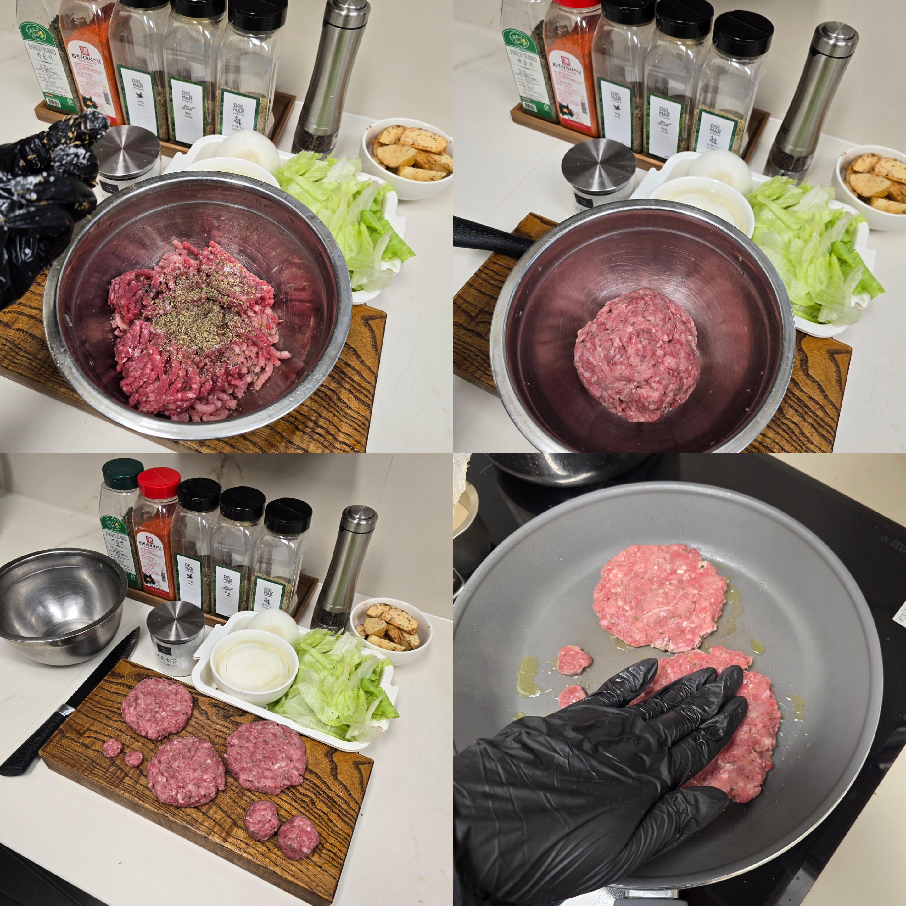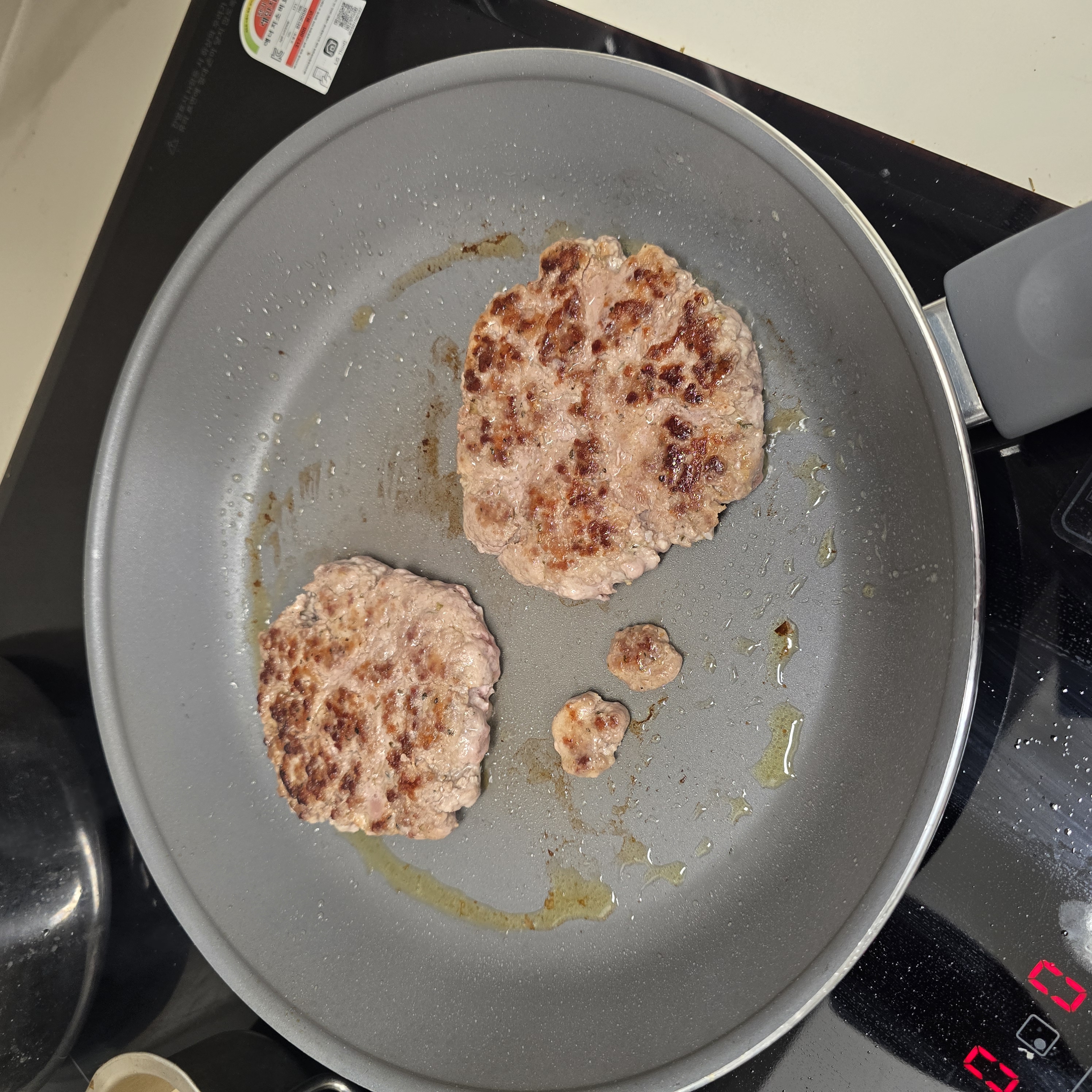 양념과 소금을 제외하고 고기를 굽고, 빵이 너무 작아서 으깨질까 봐 무서웠습니다.